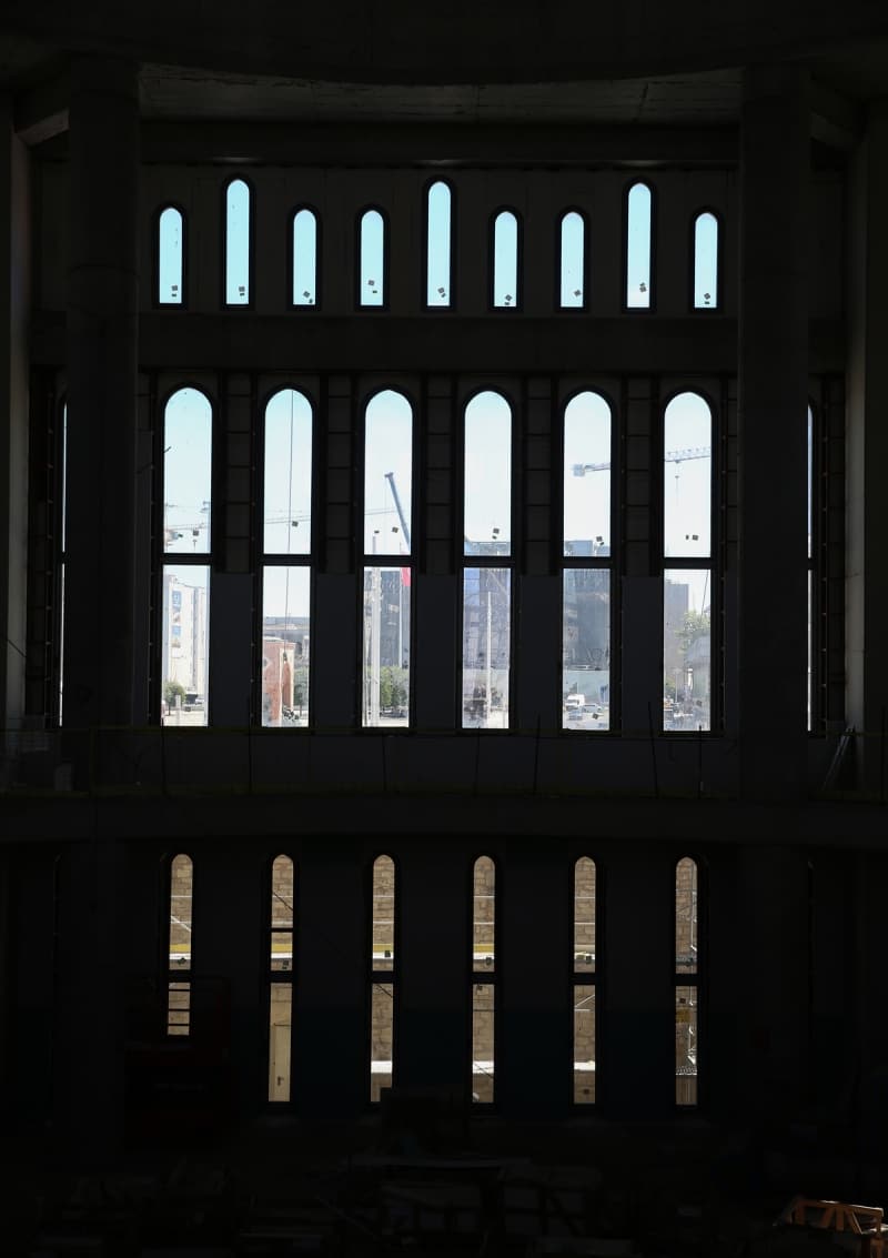 Öte yandan 61 metre yüksekliğindeki 2 minarede çalışmalar tamamlanıyor. Minarelerde bulunan 4 şerefenin 2'si tamamlandı. Şerefelerin tamamlanmasının ardından minarelere kurulan iskele de sökülecek.