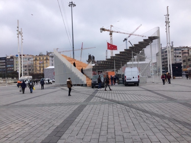 Geçici sergi platformu, Taksim Meydanı’nda 253 metrekarelik alana kuruldu. Açık alanı merdivenli bir oturma düzeni ile tasarlandı. Kapalı alan ise sergilerin yapılabileceği şekilde dizayn edildi.