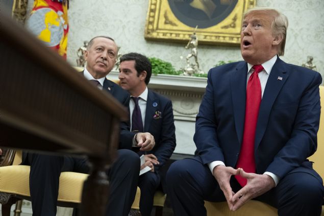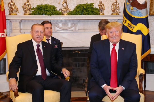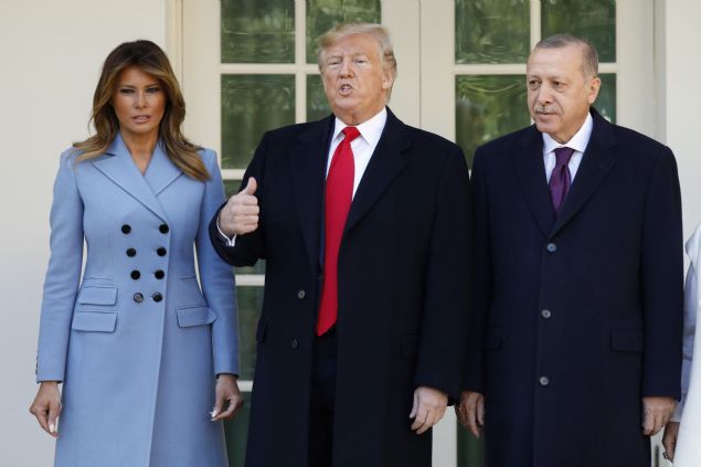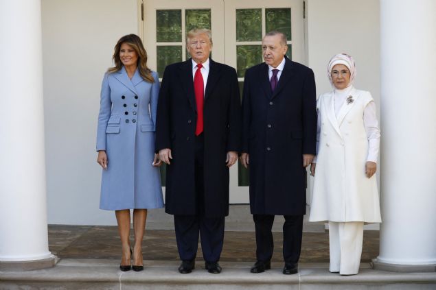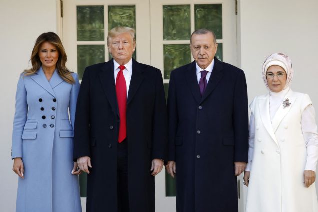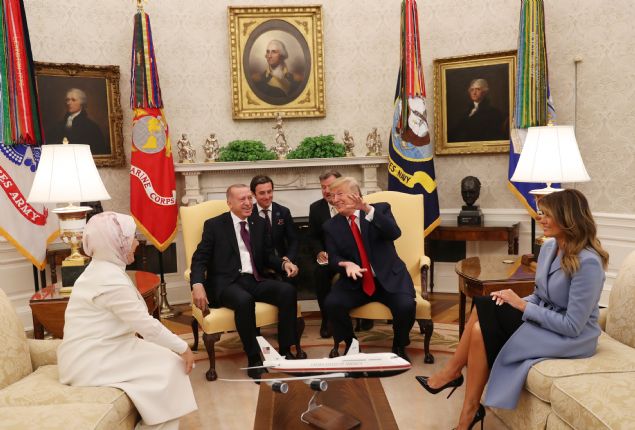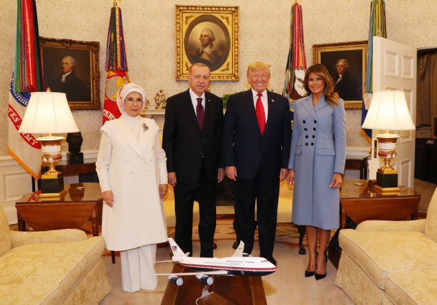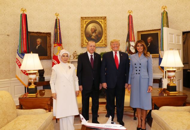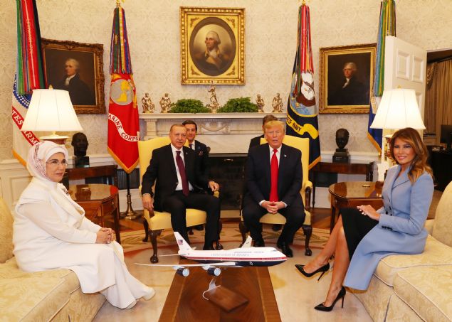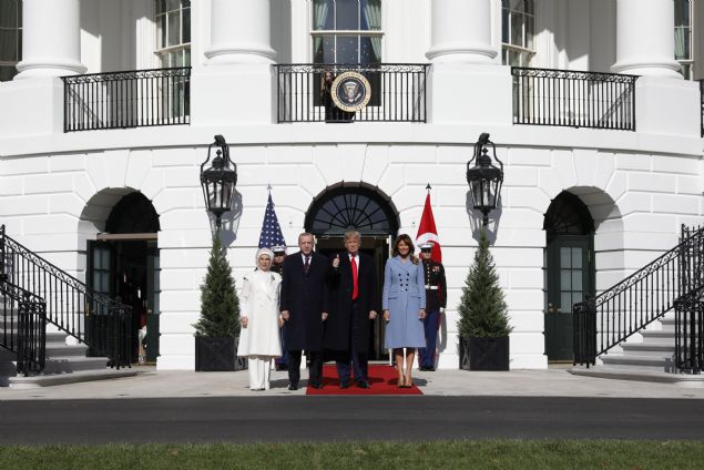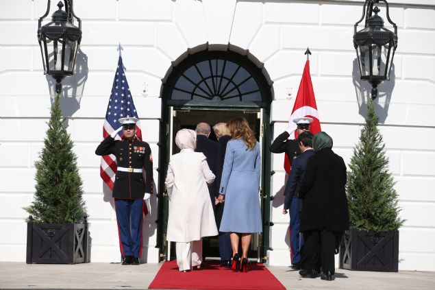 Cumhurbaşkanı Erdoğan bugünkü temasları kapsamında ABD Başkanı Donald Trump ile görüşmek üzere Beyaz Saray'a geldi. Cumhurbaşkanı Erdoğan ve eşi Emine Erdoğan, Beyaz Saray’da ABD Başkanı Donald Trump ve eşi Melaine Trump tarafından karşılandı.