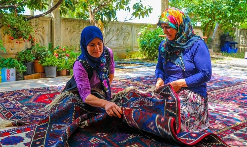 Kadınlar, halı dokumacılığını atalarından öğrendiklerini anlatarak, miraslarını çocuklarına aktardıklarını söyledi. Orijinal bir Döşemealtı halısının dokunması için 7 ila 8 bin arası ilmik atıldığını, üzerindeki ipin ise tamamen koyun tüylerinden oluştuğunu anlatan halı ustası Esma Şekerci, iplere renk vermek içinde doğal bitki kökleri kullandıklarını aktardı.
