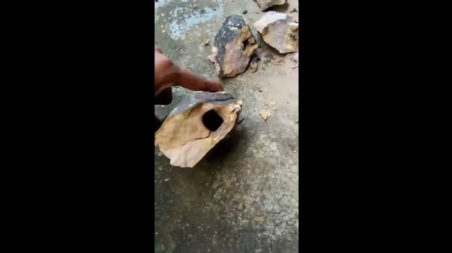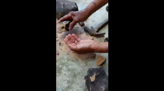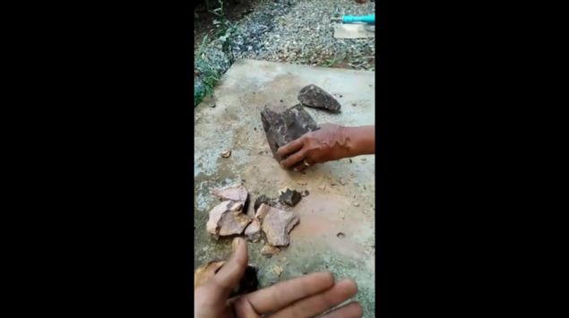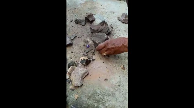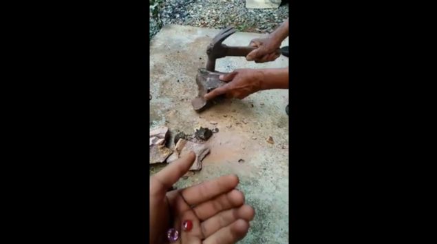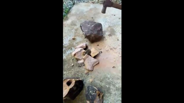 Sosyal medyada paylaşılan görüntülerde, kadın bulduğu taşları çekiçle parçalamaya çalışıyor. Taşlar kırıldıktan sonra içinden çıkan renkli taşların elmas olduğu söyleniyor.