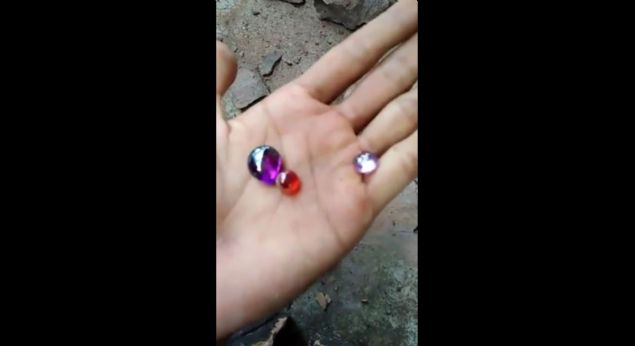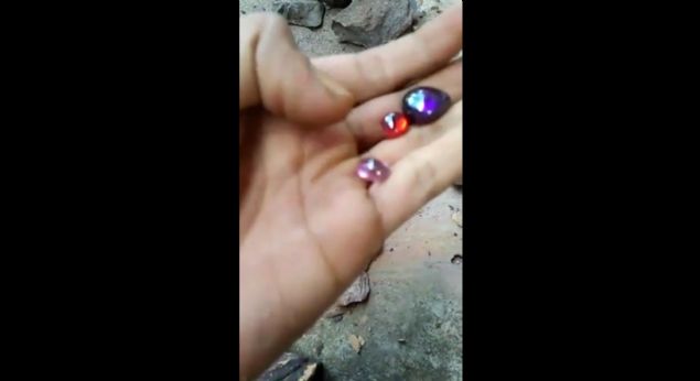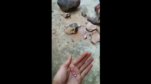 Taşlar kırıldıktan sonra içinden çıkan renkli taşların elmas olduğu söyleniyor.