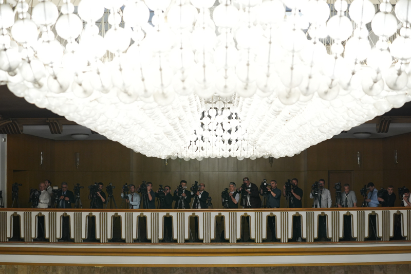 Cumhurbaşkanı Erdoğan, daha sonra TBMM Başkanı Kurtulmuş'la Tören Salonu'nun yanında bulunan Mermerli Salon'a geçti.