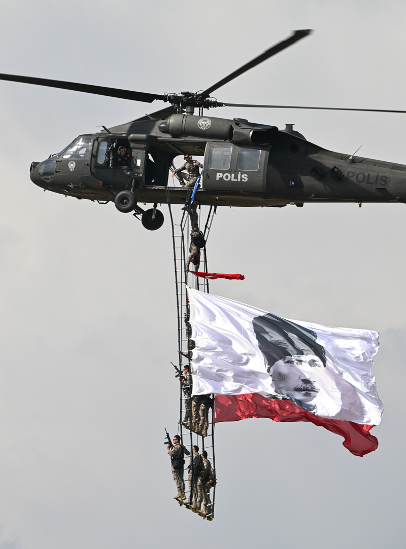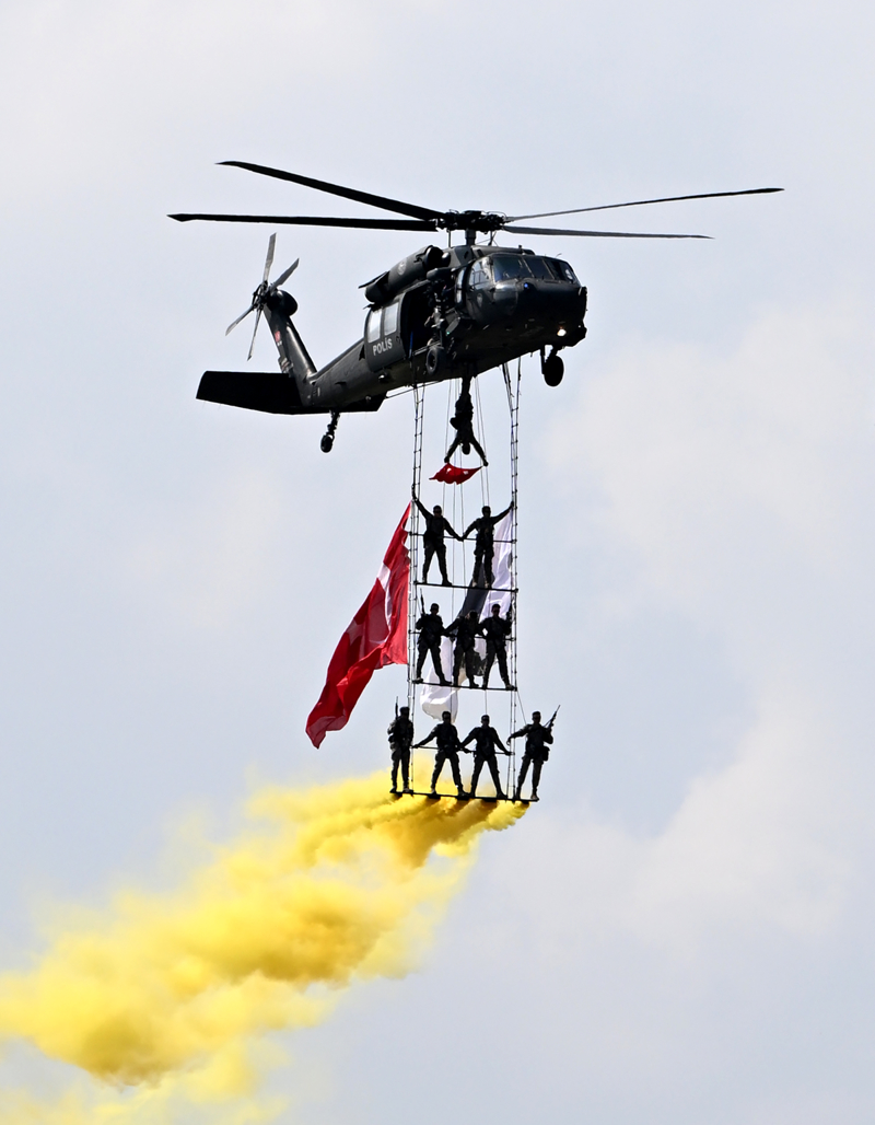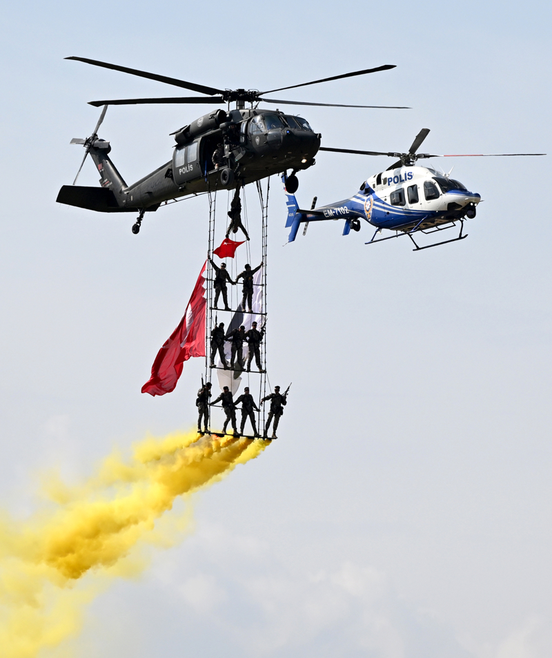 İzleyicilerin dün ilgiyle takip ettiği hava gösterileri bugün de sürecek. Saat 10.00'da paraşüt atlayışları ile başlayacak gösterilerde gün içinde Türk Yıldızları, Solotürk, Gyrocopter, Bayraktar TB2, BEL-429 (Üzüm Salkımı), Bayraktar Akıncı, S-70 (Çelik Kanatlar), Paramotor, AB-412 (SGM), T-129 Atak Helikopteri gökyüzünde heyecan veren gösteriler sunacak.