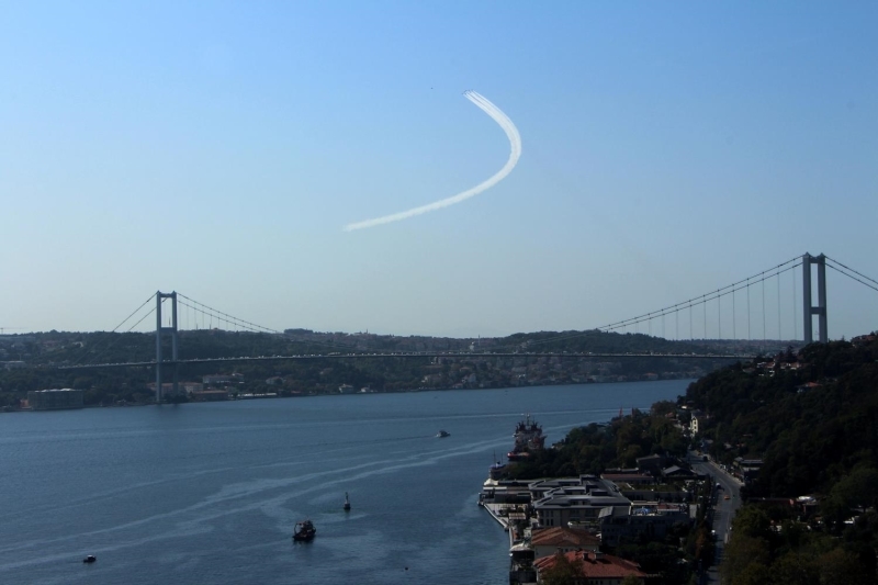 Türk Hava Kuvvetleri'ne ait uçaklar ile Azerbaycan Hava Kuvvetleri'ne ait MIG-29 uçakları Saat 11.00 sıralarında İstanbul Boğazı üzerinde belirdi.