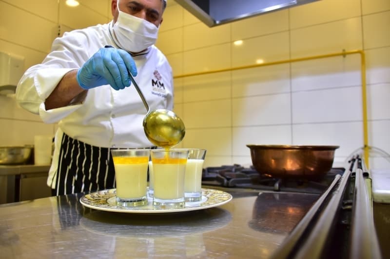 Gaziantep Mutfak Sanatları Eğitim Merkezi şeflerinden Mustafa Gülten, AA muhabirine yaptığı açıklamada, sütlü zerdenin kentin sevilen tatlılarından biri olduğunu söyledi.