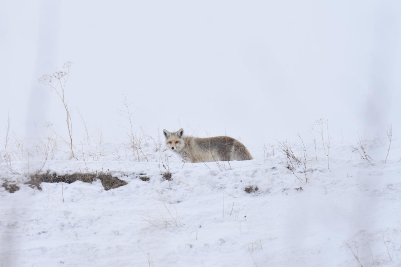 Kar kalınlığının yer yer bir metreye ulaştığı ve hava sıcaklığının sıfırın altında 31 dereceye kadar düştüğü Kars'ta, kar yağışının ardından tilkiler yiyecek bulmakta zorluk çekti.
