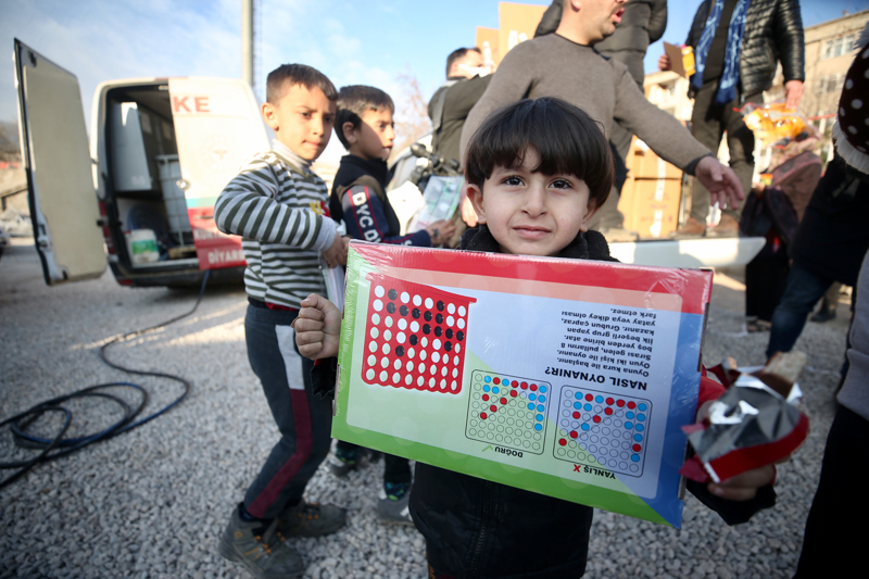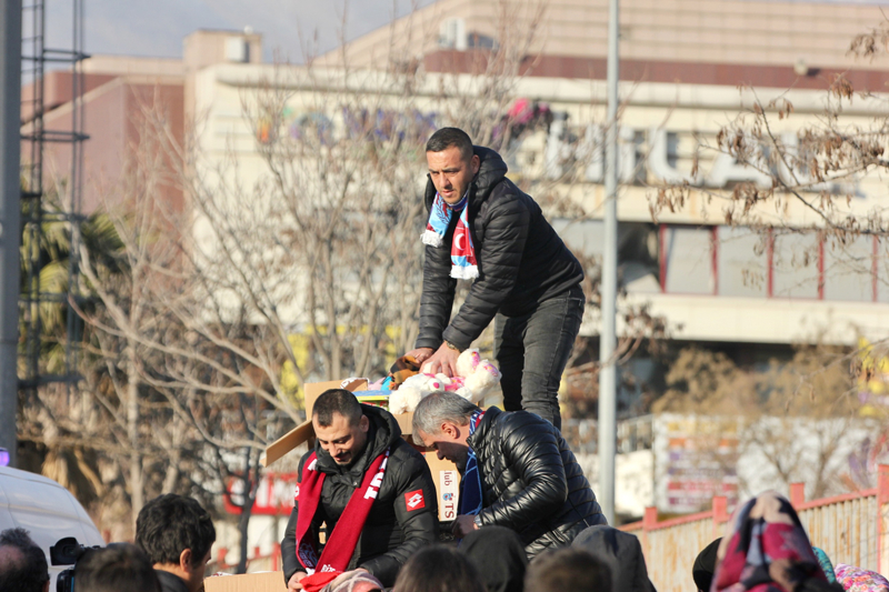 Taraftar gelirinin tamamının 'asrın felaketi' olarak nitelenen Kahramanmaraş merkezli depremlerden etkilenenlere bağışlandığı maçta bordo-mavili taraftarlar ayrıca maç öncesinde çocuklar için oyuncak getirdi.