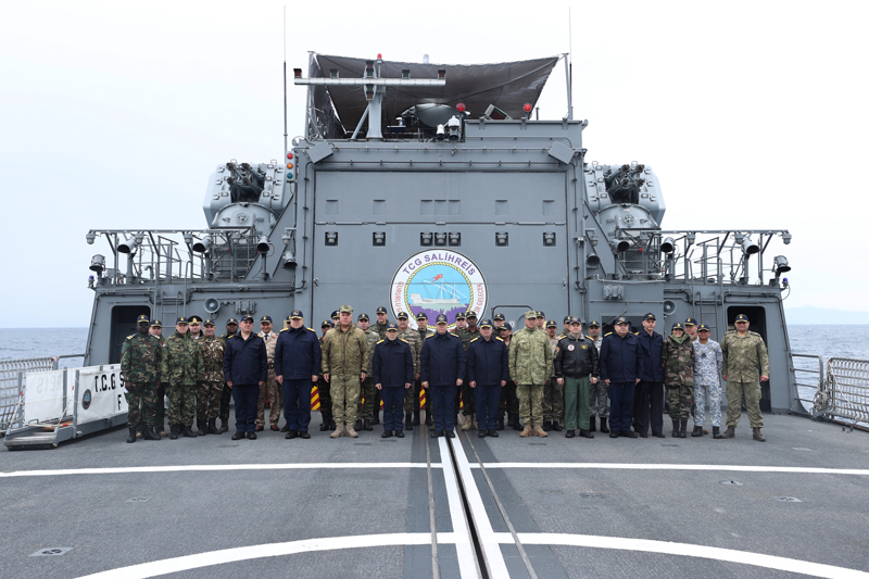 Tatbikatı, TCG Salihreis Fırkateyni'nden Donanma Komutanı Koramiral Kadir Yıldız, Deniz Kuvvetleri Harekat Başkanı Tümamiral Mehmet Baybars Küçükatay, Harp Filosu Komutanı Tümamiral Hüseyin Tığlı, SAT Komutanı Tuğamiral Ercan Kireçtepe, Amfibi Görev Grup Komutanı Tuğamiral İbrahim Özdoğan, Deniz Hava Komutanı Tuğamiral Savaş Eser, Denizaltı Filosu Komutanı Tuğamiral Timur Yılmaz, Donanma Harekat Başkanı Tuğamiral Kaan Türkkan ile 24 ülkeden 28 ataşe de takip etti.