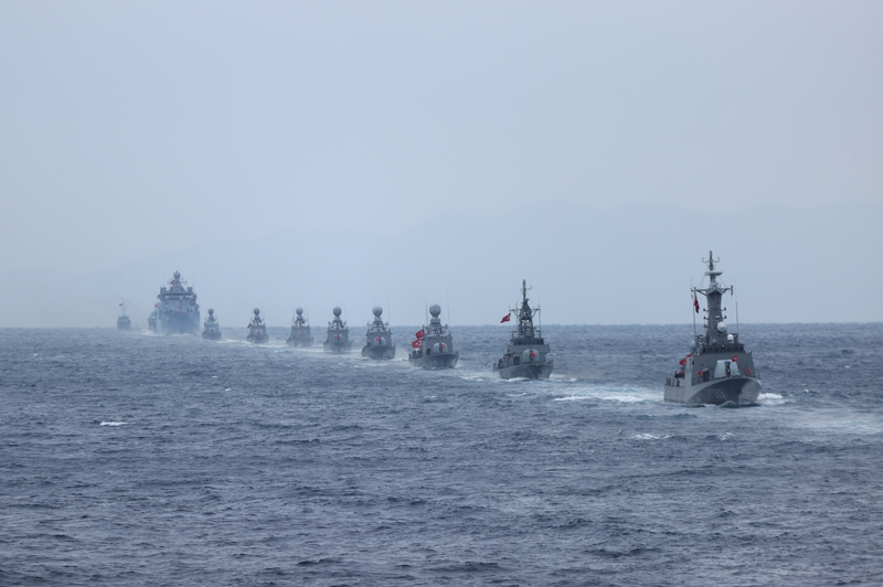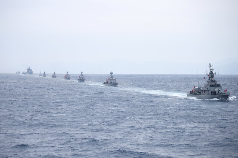 Tatbikatın Doğu Akdeniz'i kapsayan kısmına katılan fırkateynler, hücumbotlar, denizaltılar, yardımcı sınıf gemiler, mayın gemileri, karakol gemileri Aksaz Limanı'ndan sabah erken saatlerinde hareket etti.