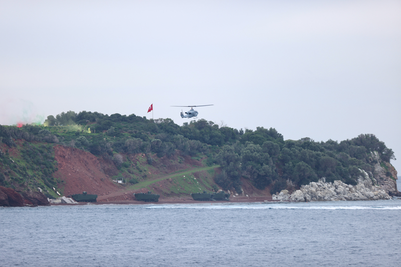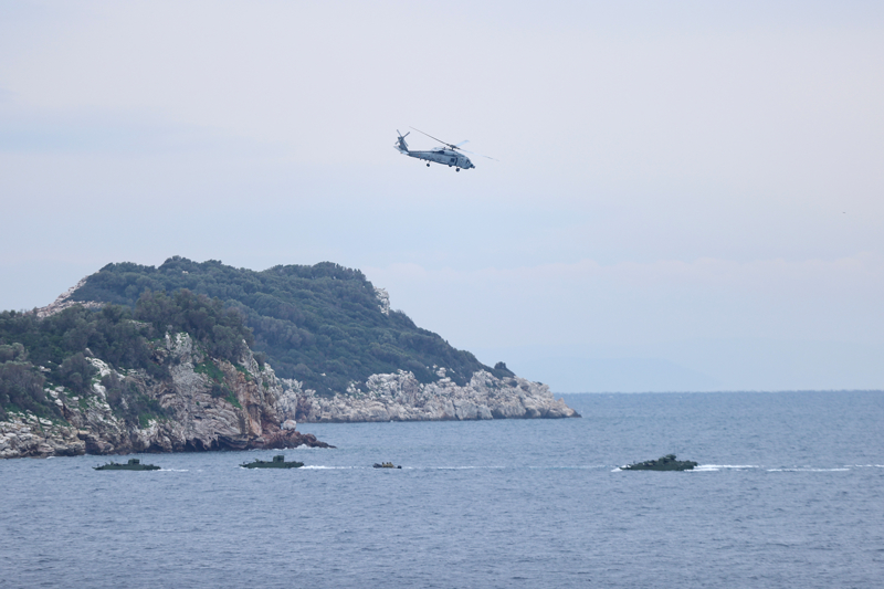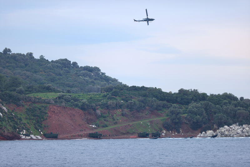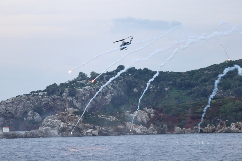 İlk safhada amfibi harekata tehdit teşkil eden hedefler taarruz helikopterleri ve su altı taarruz botu tarafından yapılacak havadan ve denizden atışlar ile etkisiz hale getirildi.