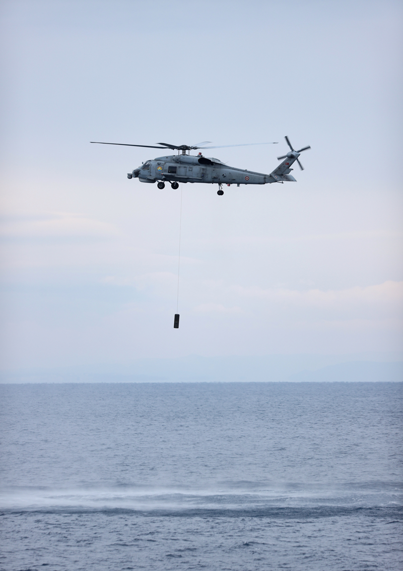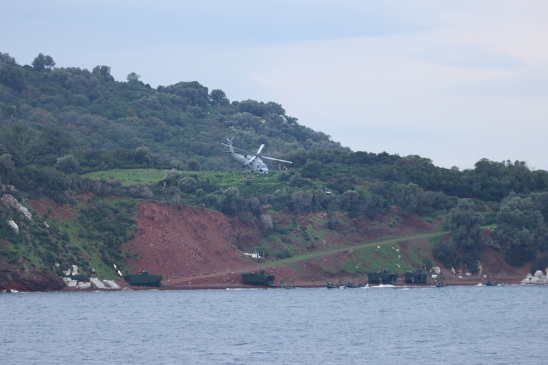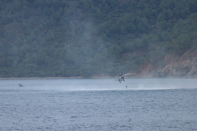 Amfibi harekatın ardından denizaltı savunma harbi kapsamında DSH helikopterleri ile sonar daldırması yapılarak elde edilen temasın güvenlik seviyesi deniz karakol uçağından atılan sonoboy ve aksungur siha tarafından yapılan veri aktarımıyla yükseltildi.