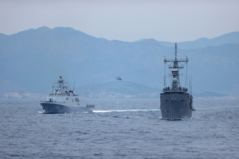 Tatbikat kapsamında TCG Salihreis ve ada sınıfı korvetler arasında yakın manevralar icra edilerek denizde malzeme transferi yapıldı.