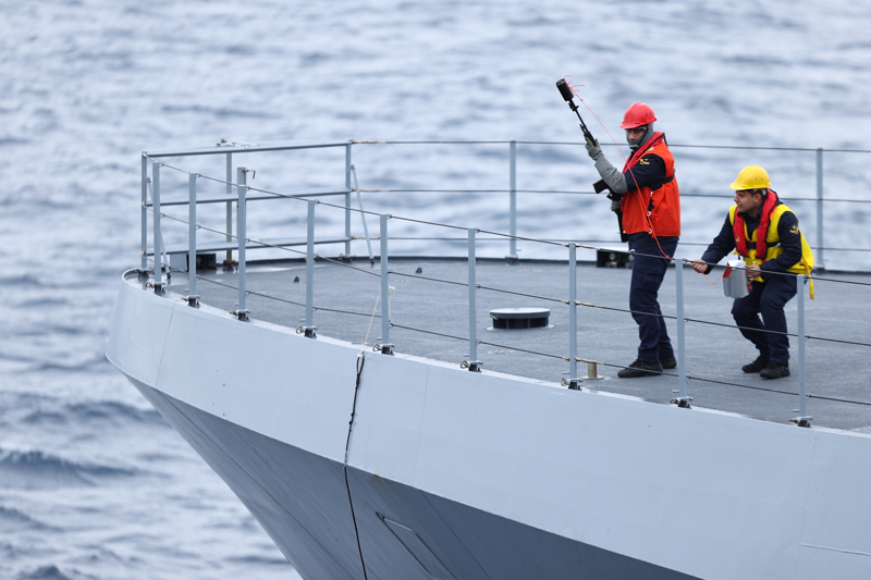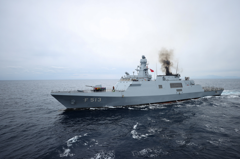 Doğu Akdeniz'de icra edilen tatbikatın basın gününde TCG Salihreis Fırkateyni'nde Donanma Harekat Başkanı Tuğamiral Kaan Türkkan brifing verdi.