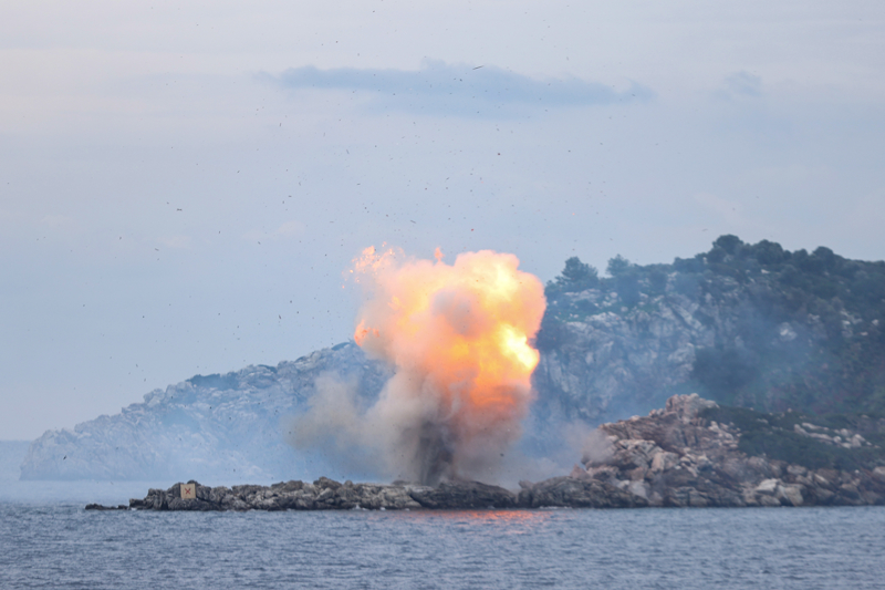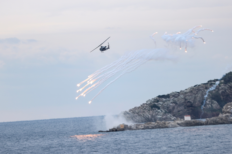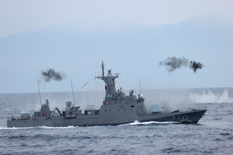 Tatbikat kapsamında SH-70 Seahawk helikopteri tarafından havadan satha temren güdümlü mermi atışı yapılırken, bir sonraki aşamada ise bahse konu hedef geminin imha edilmesi maksadıyla 4 hücumbot tarafından eş zamanlı su üstü atış gerçekleştirildi.