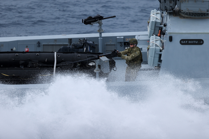 İlk faaliyet olarak mayın karşı tedbirleri harekatı kapsamında TCG Akçay mayın avlama gemisi ve helikopterlerde bulunan su altı savunma timi, yüksek değerli birliğin mayın tehdidine karşı korunması senaryosuna istinaden taktik pençe harekatını gerçekleştirdi.