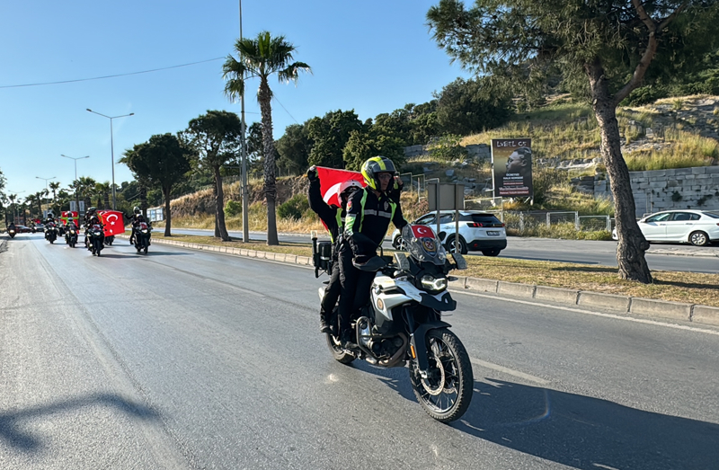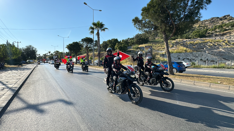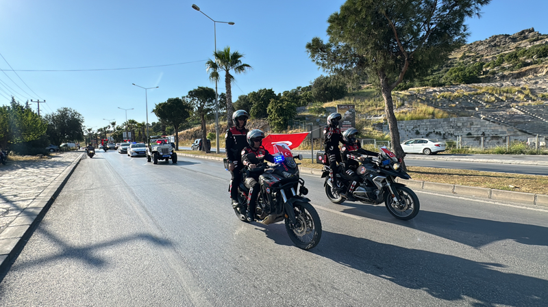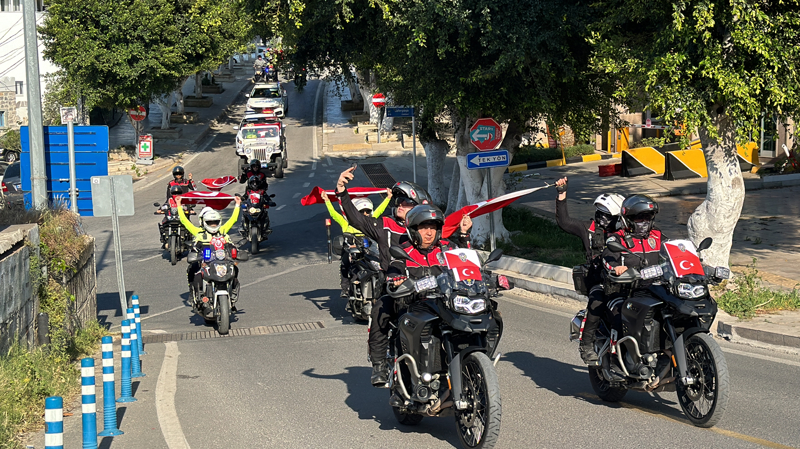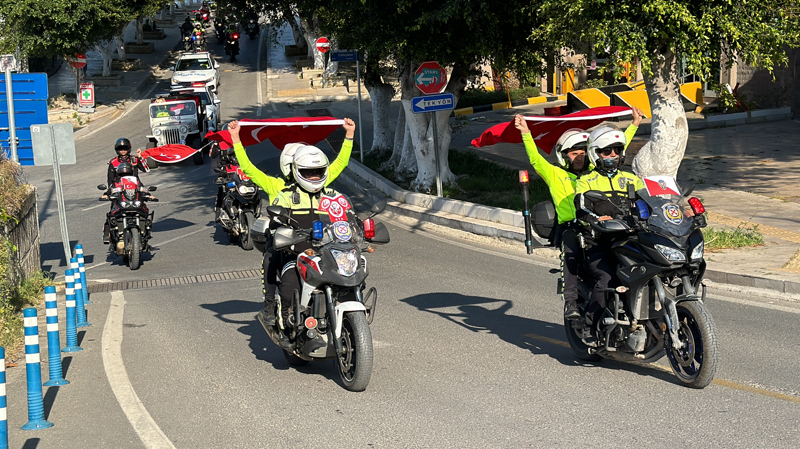 Araçların geçişine eşlik eden çok sayıda motorize ekip, bayrak açtı.