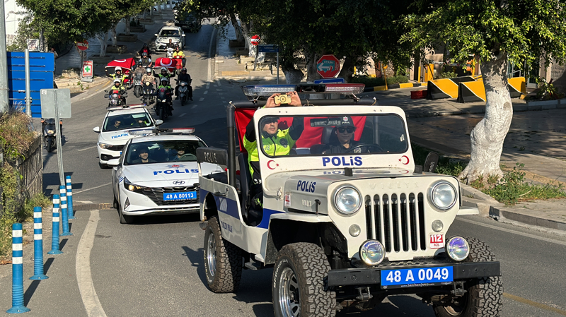 İlçe Emniyet Müdürlüğüne bağlı trafik, yunus, asayiş ve karakol ekipleri, Cevat Şakir Caddesi'nde bir araya gelerek, araçlarla korteje katıldı.