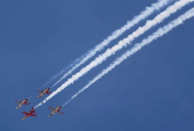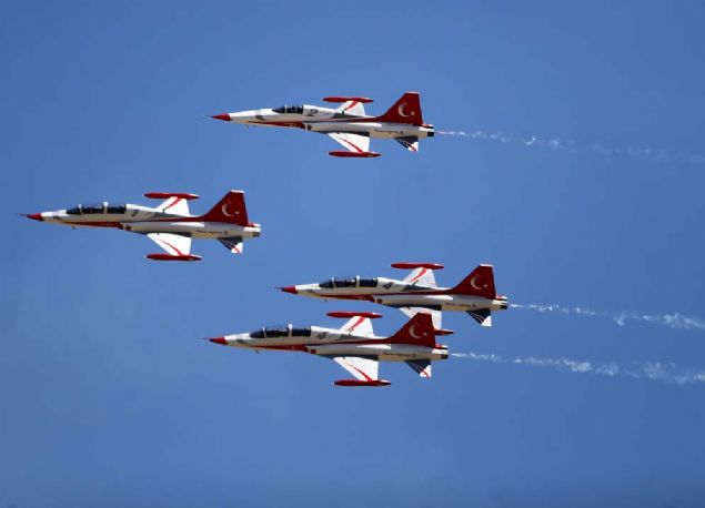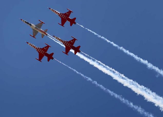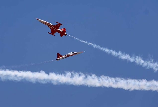 Türk Yıldızları'nın farklı konfigürasyonlardaki pasaj geçişleri ve akrobatik hareketleri ilgiyle izlendi.