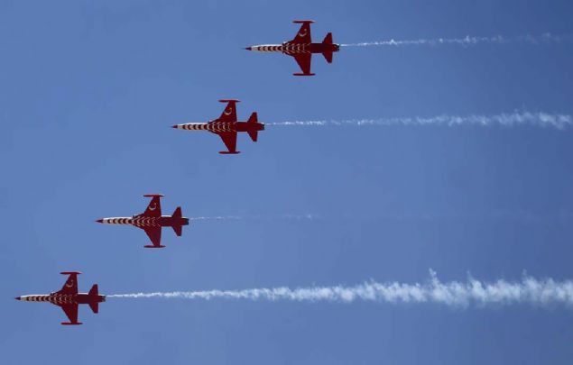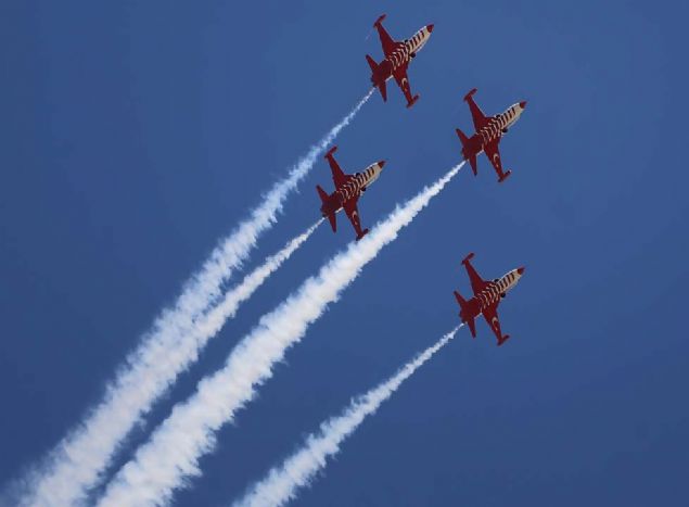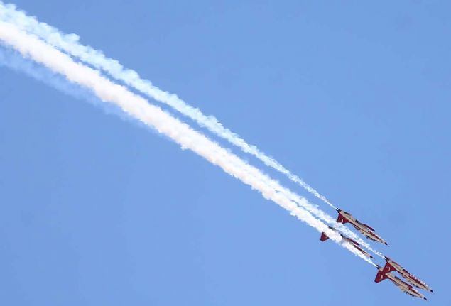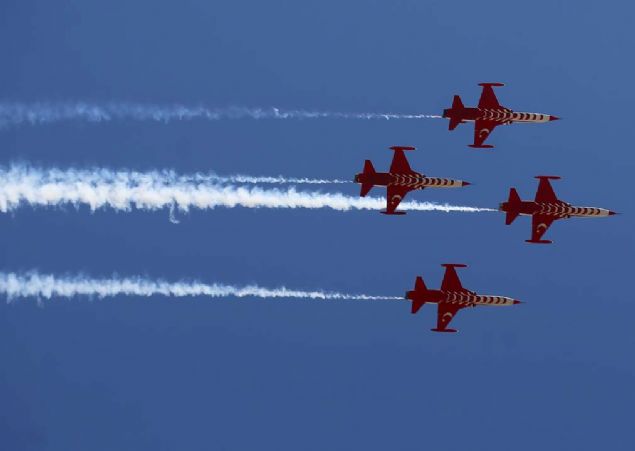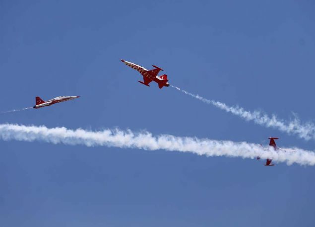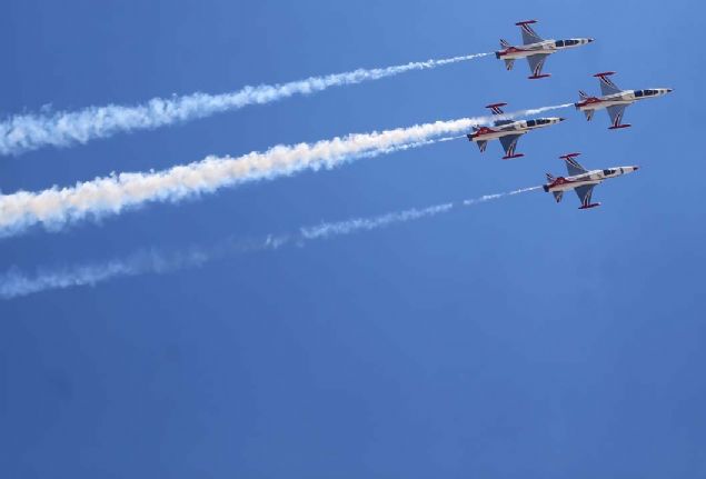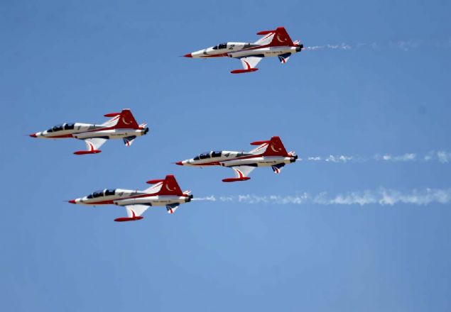 Akrobasi timinin 4 uçakla gerçekleştirdiği gösteriyi, Genelkurmay Başkanı Orgeneral Yaşar Güler, Hava Kuvvetleri Komutanı Hava Orgeneral Hasan Küçükakyüz ile seçkin gözlemciler izledi.