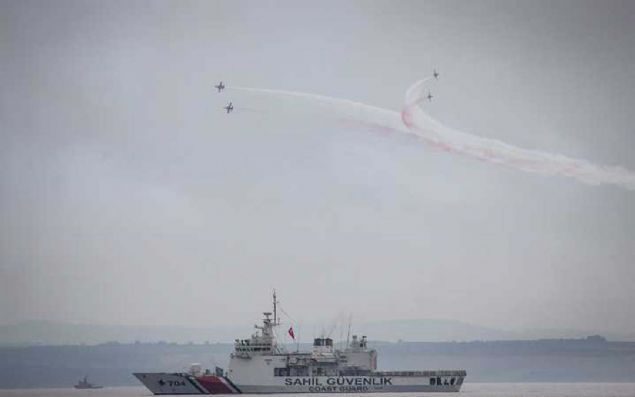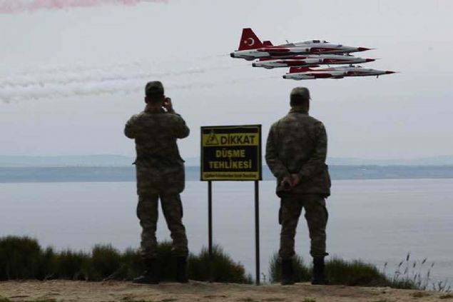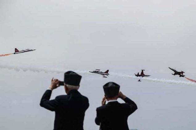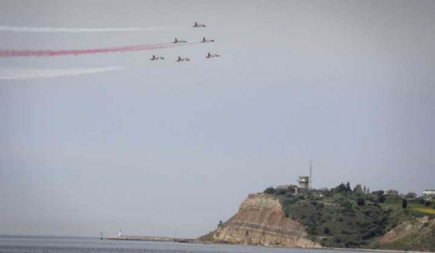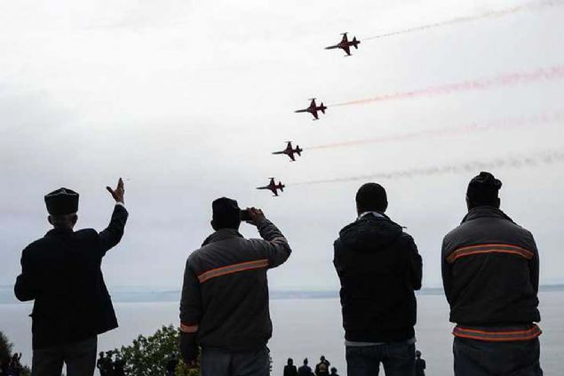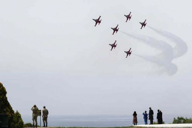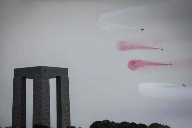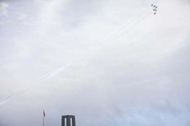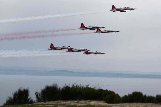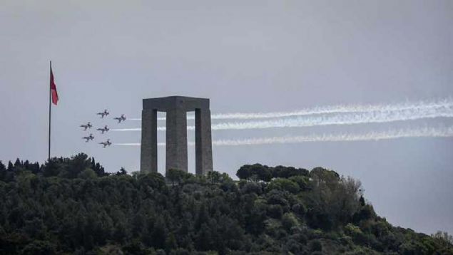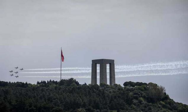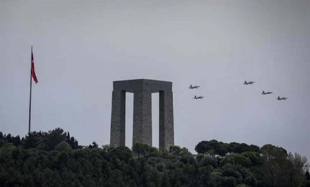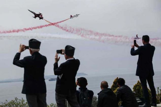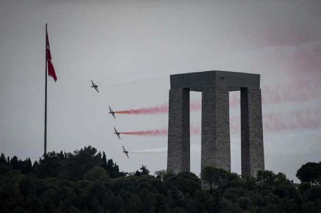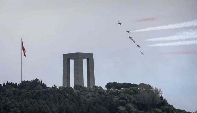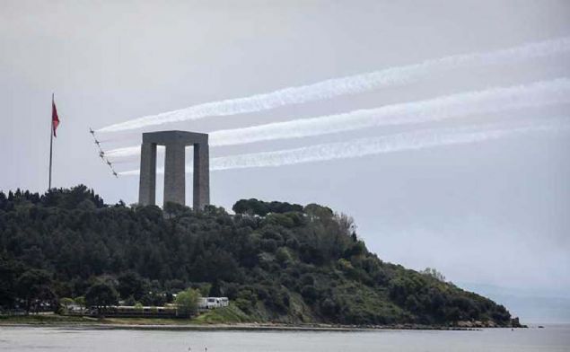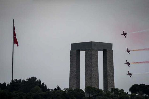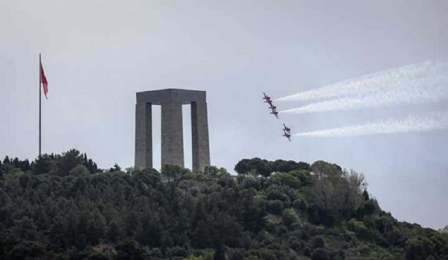 Çanakkale Kara Savaşlarının 104. yılı dolayısıyla Şehitler Abidesi'nde anma töreni düzenlendi. Hava Kuvvetleri Komutanlığının akrobasi ekibi Türk Yıldızları, gösteri uçuşu yaptı.