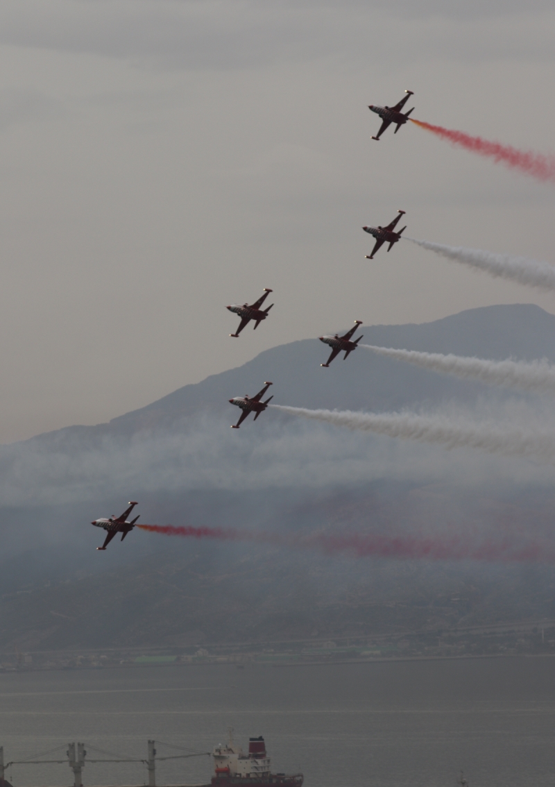 Kent semalarında gerçekleştirilen gösteride 6 uçaktan oluşan tim, gerçekleştirdikleri uçuşlarla gökyüzüne kalp çizdi.
