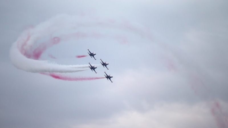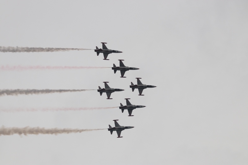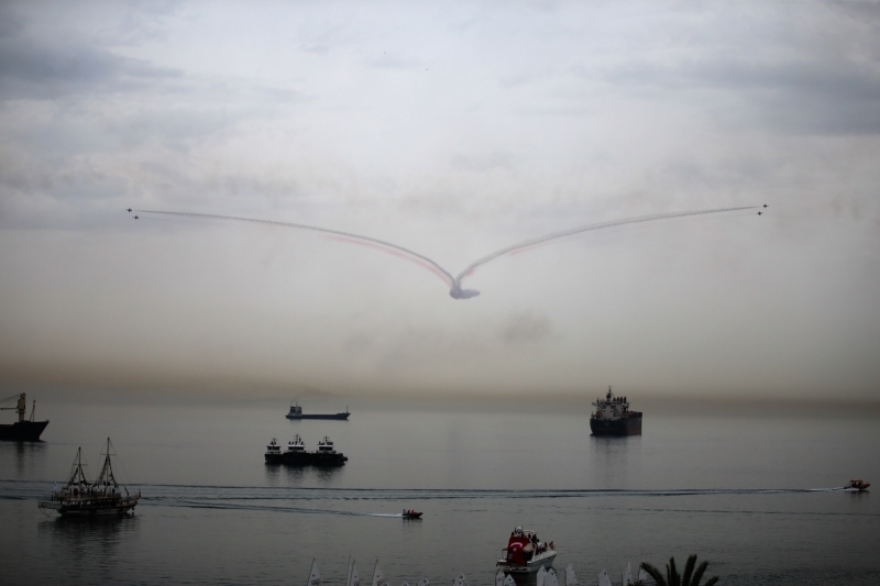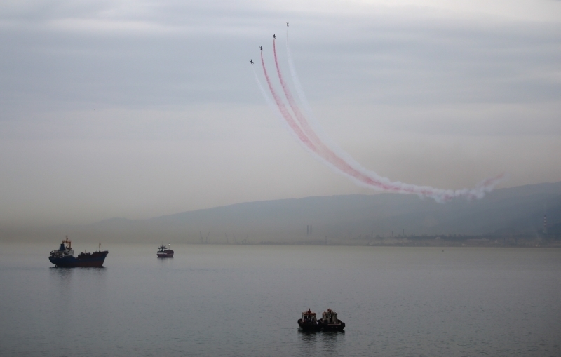 Yaklaşık 20 dakika havada kalan tim, daha sonra kent semalarından ayrıldı.