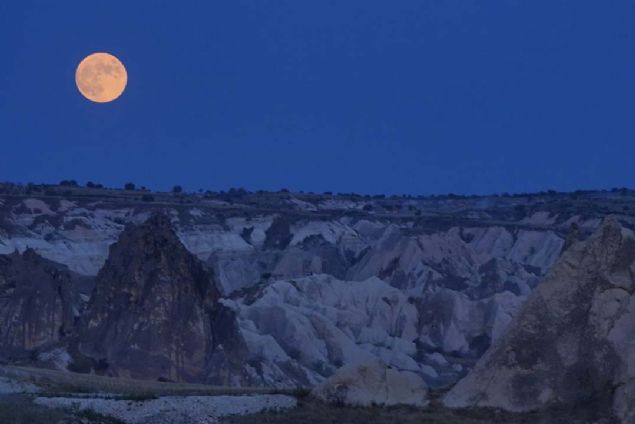 Tutulma öncesinde kızıla bürünmüş ayın doğuşu kartpostallık görüntüler oluşturdu.