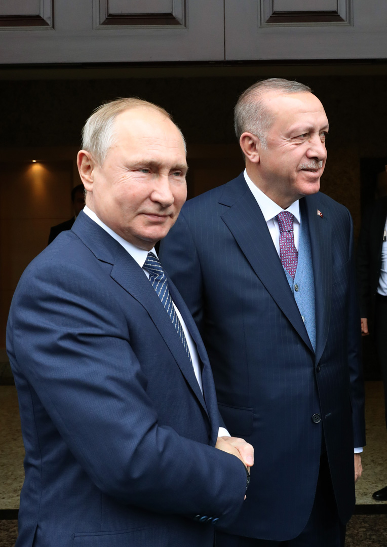 Türkiye Cumhurbaşkanı Recep Tayyip Erdoğan ile Rusya Devlet Başkanı Vladimir Putin'in, TürkAkım doğal gaz boru hattının açılışı öncesi baş başa görüşmesi başladı.