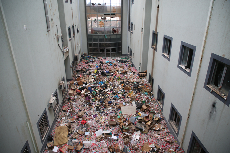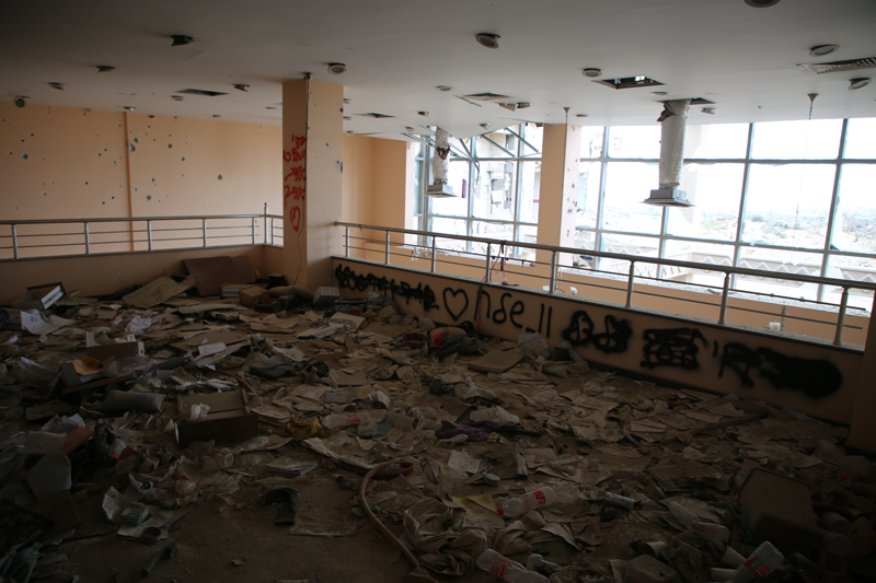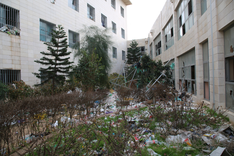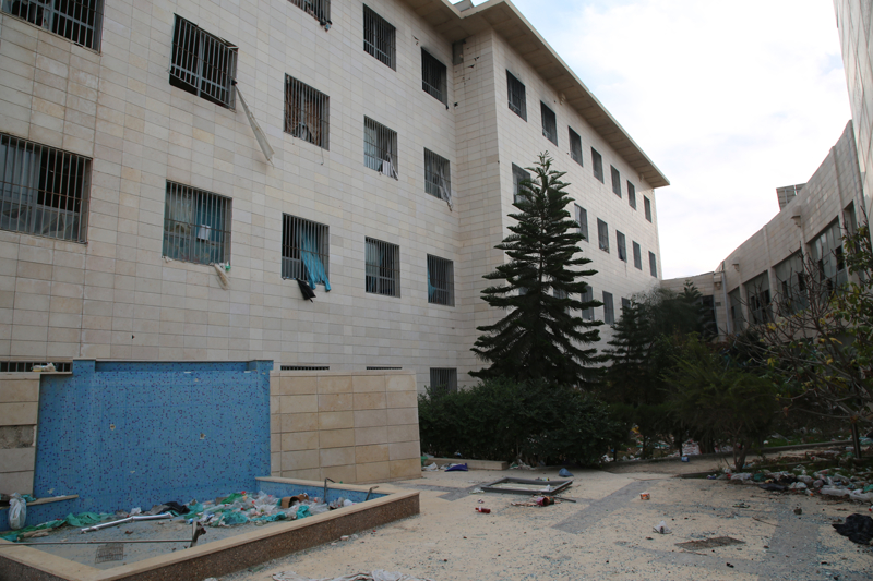 İsrail askerlerinin tahrip ettikleri hastanenin bir bölümünü de çöplük olarak kullandığı ortaya çıktı. Hastanenin orta kesimindeki bu alana İsrail askerlerinin boş pet şişeler başta olmak üzere atıklarını attığı görüldü.