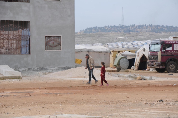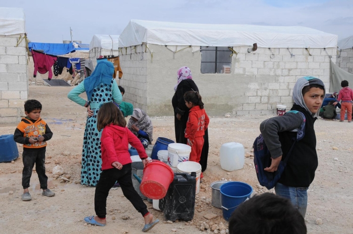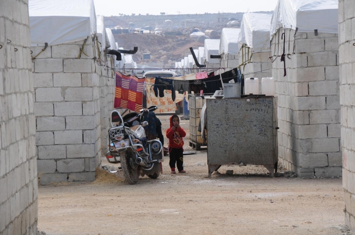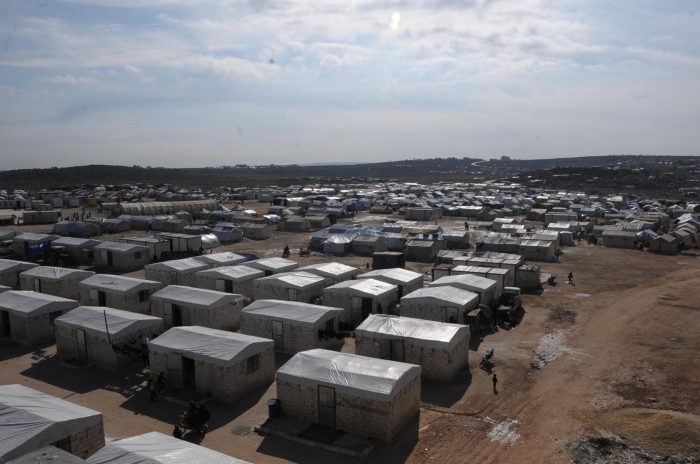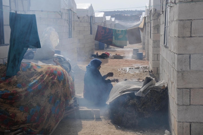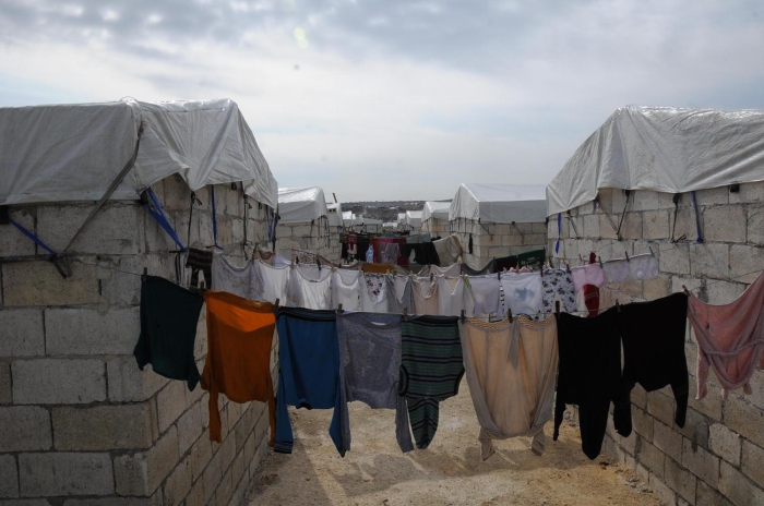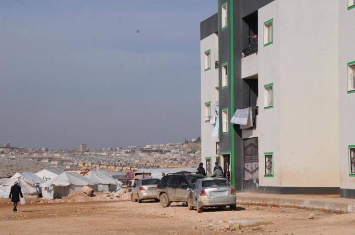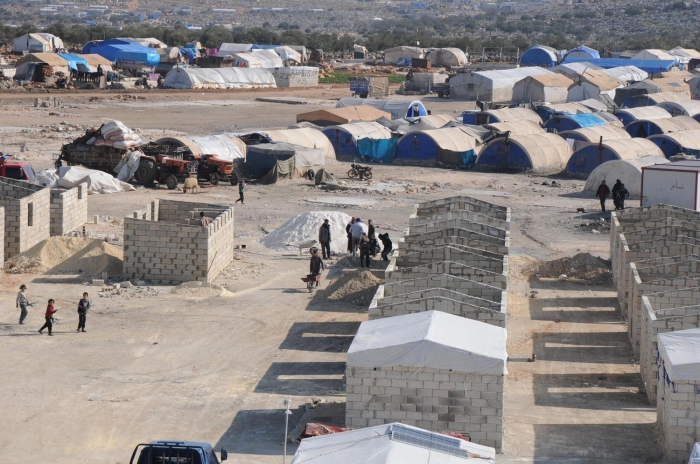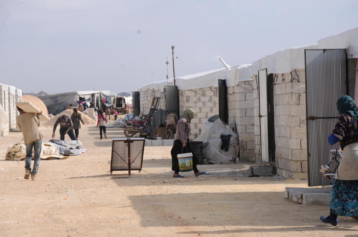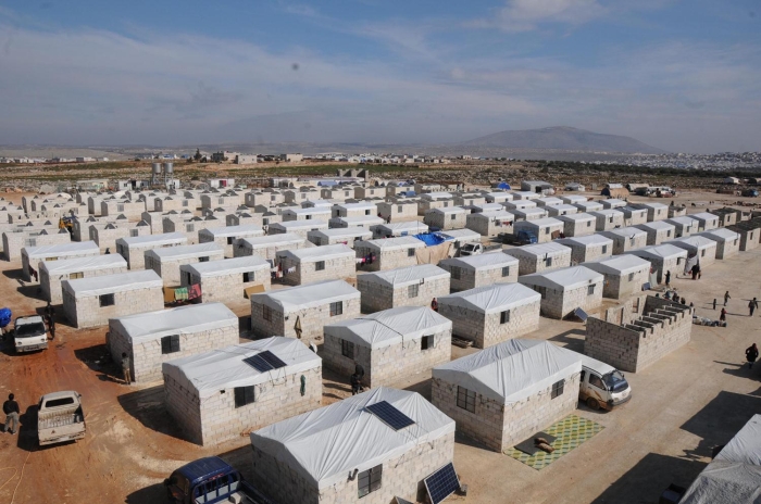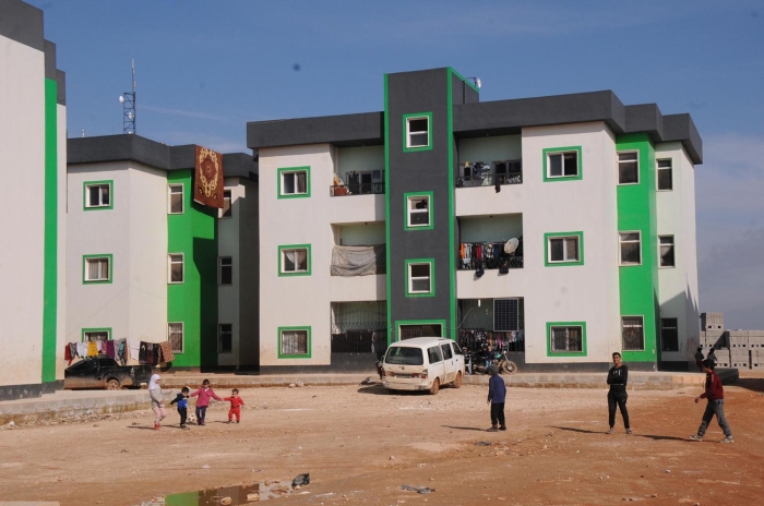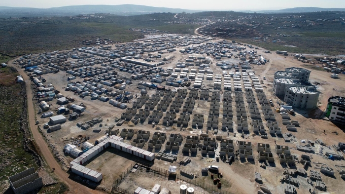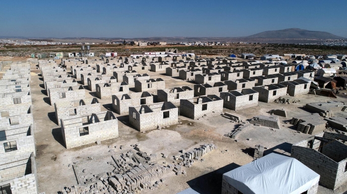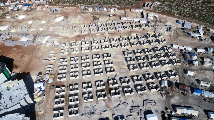 Türkiye sınırına göç eden Suriyeliler, briket evlere yerleştiriliyor