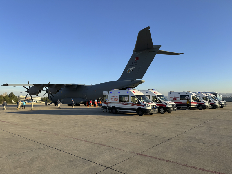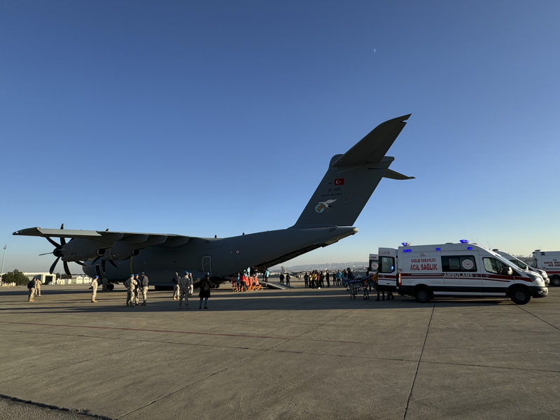 Mısır'ın El Ariş Havalimanı'ndan kalkan MSB'ye ait C-130 tipi uçak, 26 hasta, 32 refakatçi ve sağlık personeliyle Etimesgut Askeri Havaalanı'na indi.