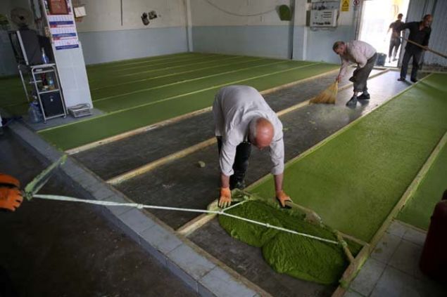 Ertesi gün tatlı su yardımıyla sabunun PH değerini ayarladıklarını kaydeden Yavuz, üçüncü gün akışkan hale gelen maddeyi yere serdiklerini belirtti.