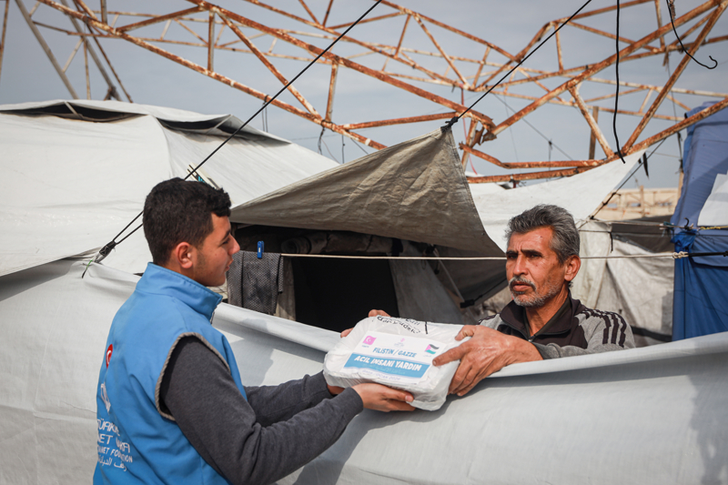 Türkiye'den Gazze'ye yardım eli: TDV, yerinden edilen Filistinlilere yemek dağıttı