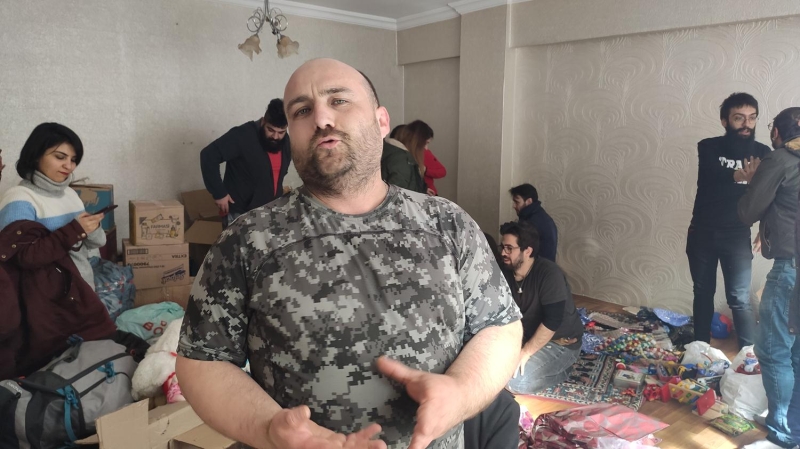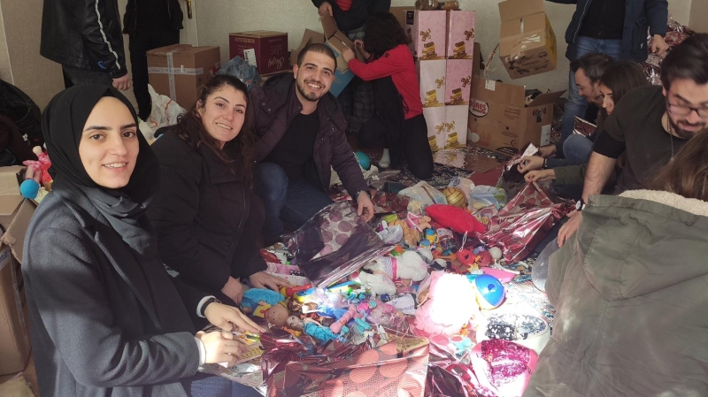 Isparta'dan gelen üniversite öğrencisi Şemsa Aris, çocuklara oyuncak toplayarak kente geldiklerine işaret ederek onlarla oyunlar oynadıklarını anlattı.
