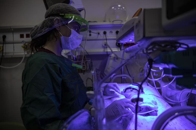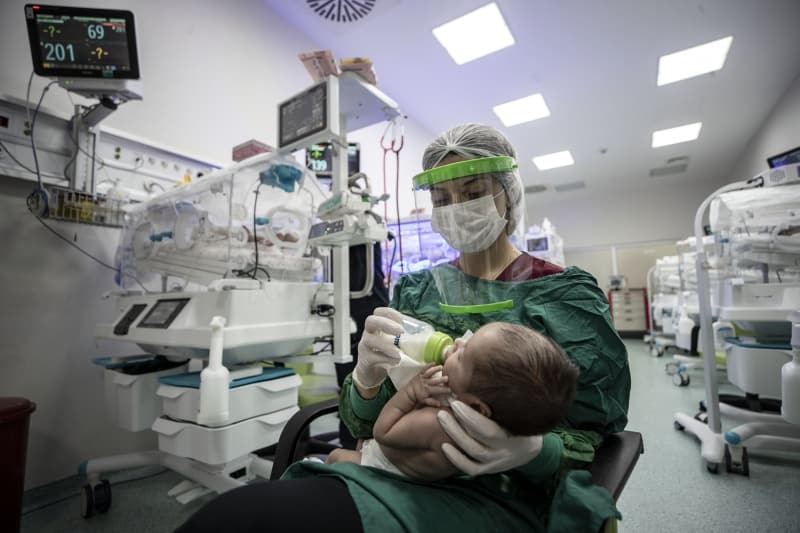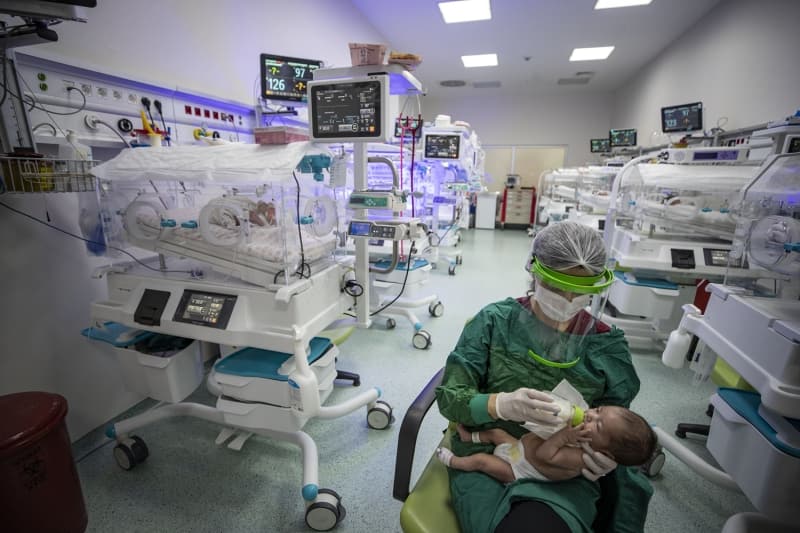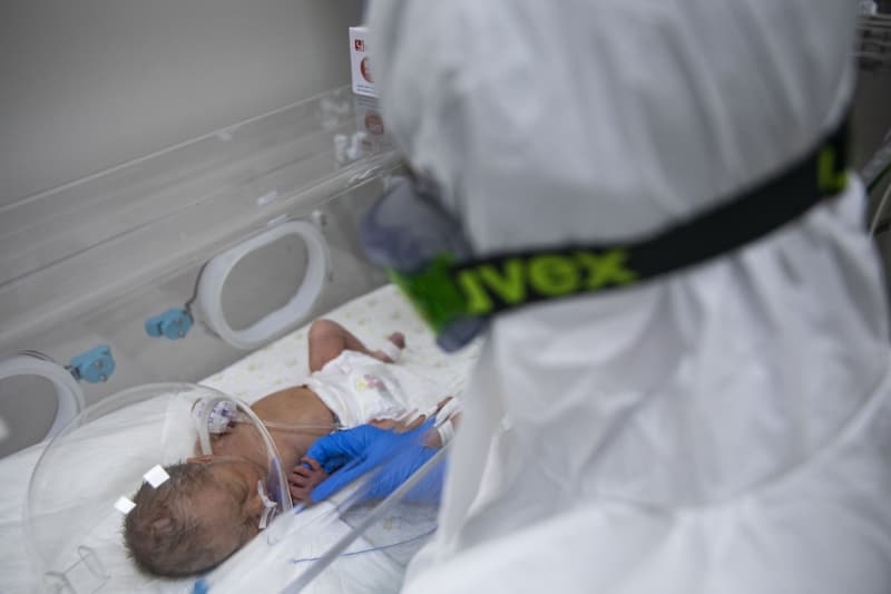 Yenidoğan Yoğun Bakım Ünitesinde çok sayıda bebek bulunuyor. Burada görevli hemşireler, her bebeği şefkatle kucaklıyor. Bu bölümün yanındaki izolasyon odasında Kovid-19 tanısı alan bir annenin yeni doğan bebeği kalıyor.