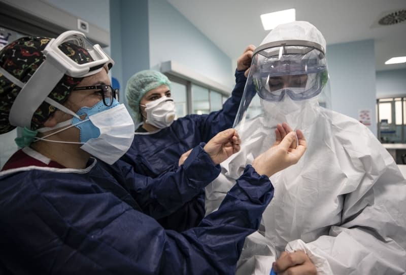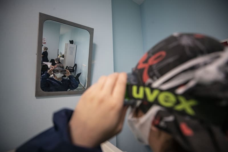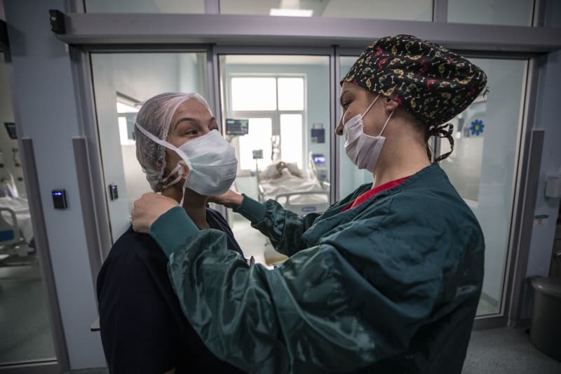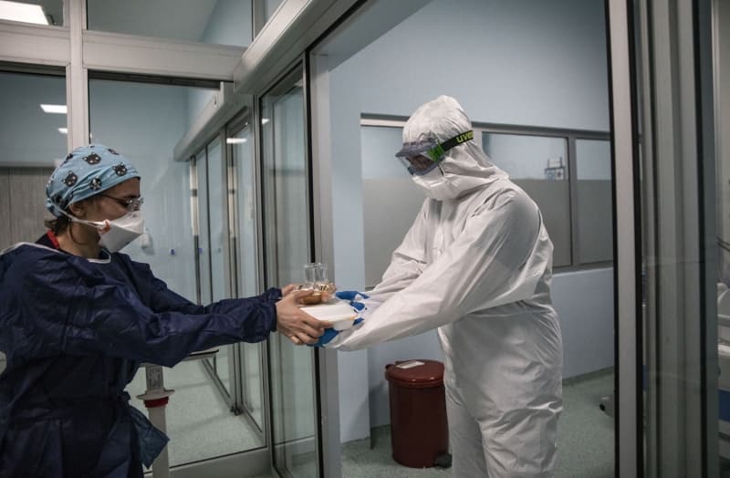 Yoğun Bakım Hemşiresi Döndü Palabıyık, salgın başladığından bu yana iş yüklerinin artığını belirterek, şunları anlattı: 'Özellikle tulumla çalışmak, 24 saat bu alanda kapalı kalmak ve maskeyle çalışmak bizi çok yoruyor. Burada maskeyle çalışıyoruz ama hemşire odasında da maskelerimizi çıkarmıyoruz. Birbirimize bulaş riski de yüksek. Mesafeyle durup yemeklerimizi bile o şekilde yiyoruz. Yoğun bakımdaki odalarda 3 saatten fazla kaldığımız oluyor ve bu süreç uzayabiliyor. Özel izolasyon odalarına her girip çıktığımızda bir forma değiştiriyoruz. 24 saat boyunca 5 forma değiştirdiğimiz oluyor. Burada çamaşır makinesi ve duş gibi imkanlarımız var. Duş alıp yeni forma giyip tekrar buraya geri dönüyoruz.'