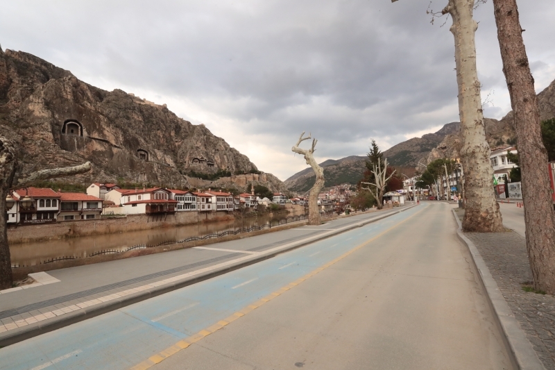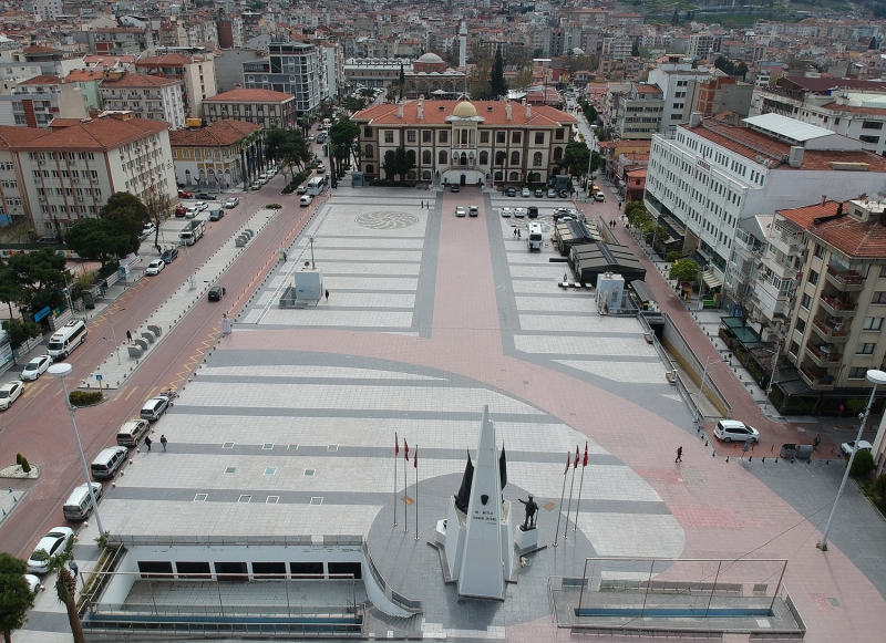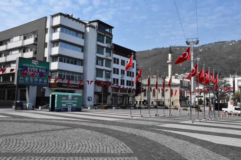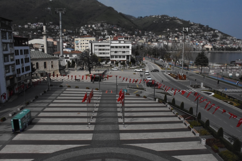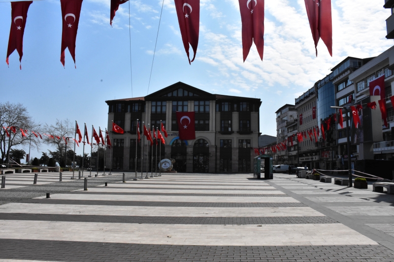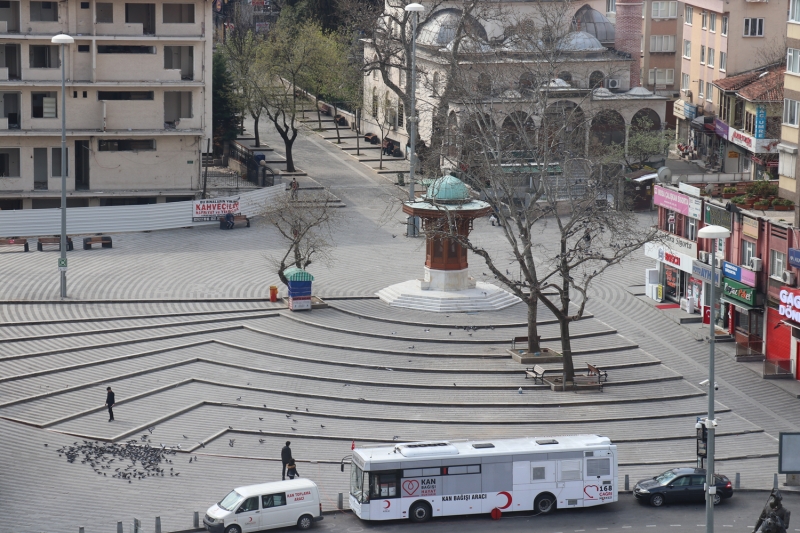 Tokat'ta yeni tip koronavirüs (Kovid-19) tedbirleri kapsamında 'evde kal' çağrısına uyulması ve 65 yaş ile üstündekilere getirilen sokağa çıkma kısıtlaması sonucu normalde yoğunluğun yaşandığı Cumhuriyet Meydanı Meydanı boş kaldı.