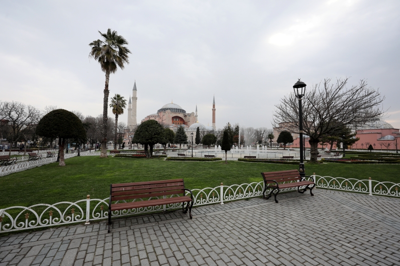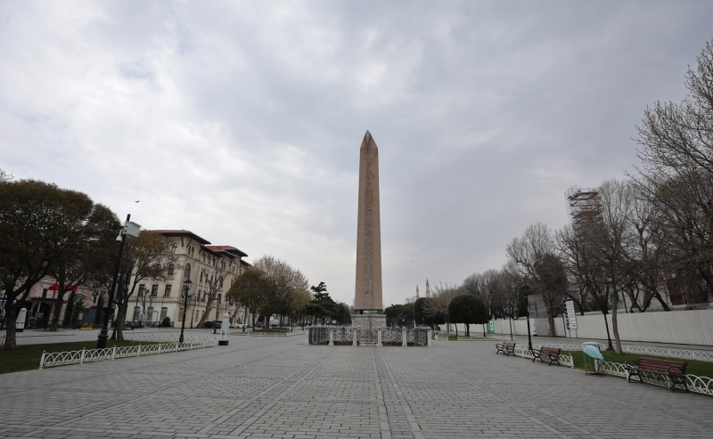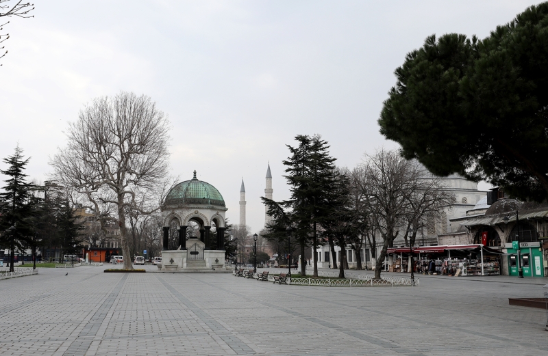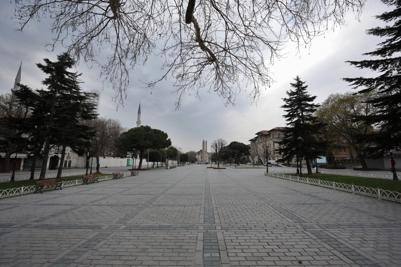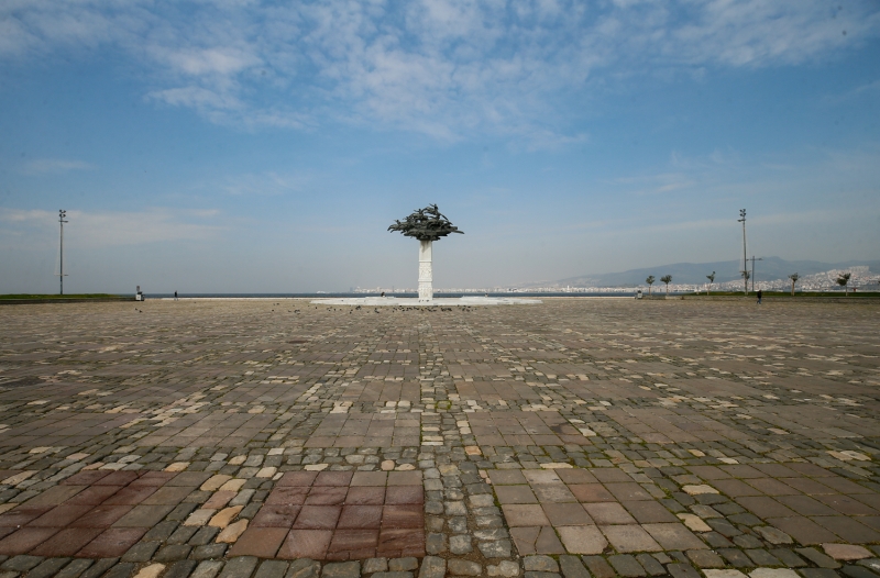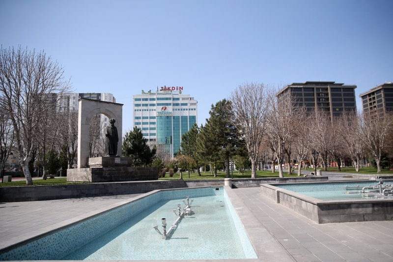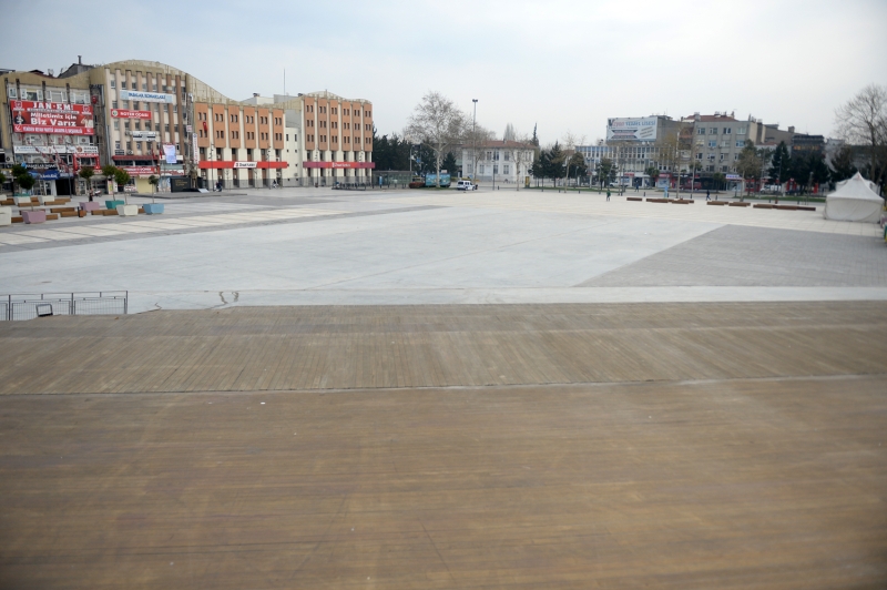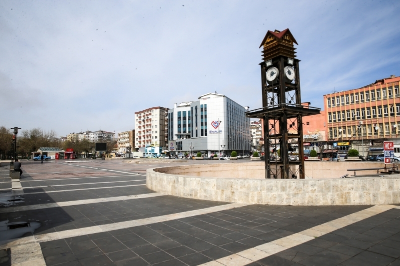 Diyarbakır'da yeni tip koronavirüs (Kovid-19) tedbirleri kapsamında 'evde kal' çağrısına uyulması ve 65 yaş ile üstündekilere getirilen sokağa çıkma kısıtlaması sonucu normalde yoğunluğun yaşandığı Kent Meydanı boş kaldı.