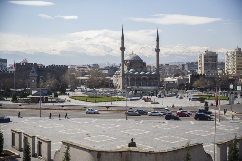 Nevşehir halkı 'Evde kal' çağrısına uydu, Kent merkezinde vatandaşların yoğunluk oluşturduğu Hükümet Konağı Meydanı boş kaldı.
