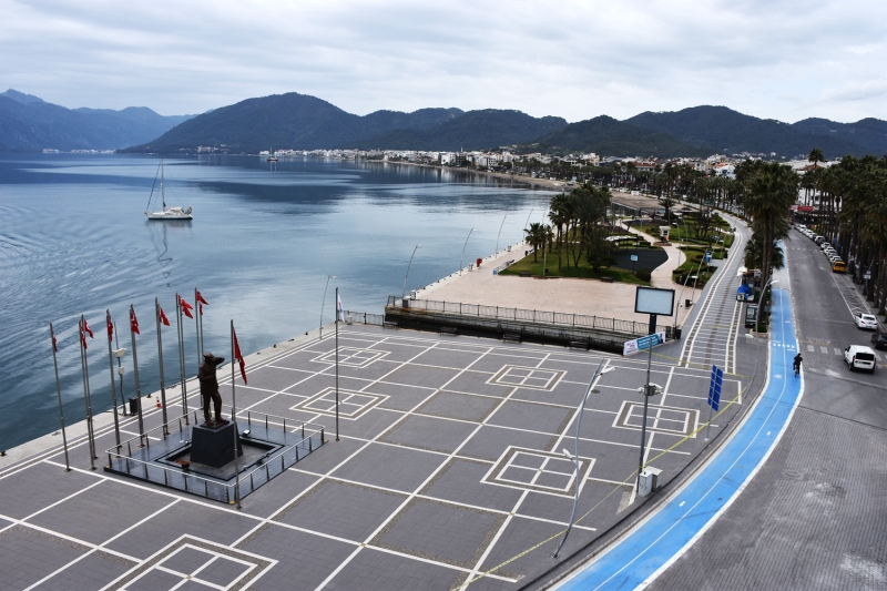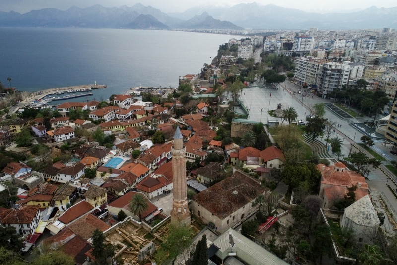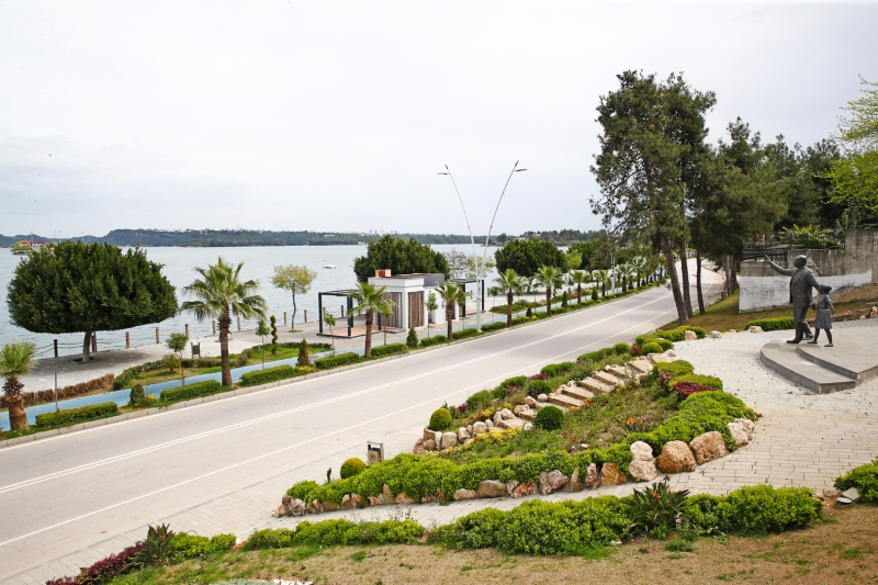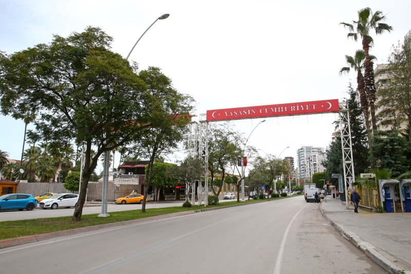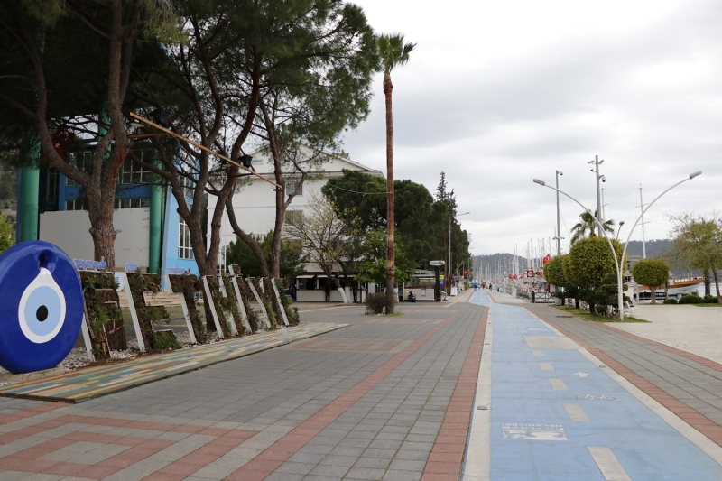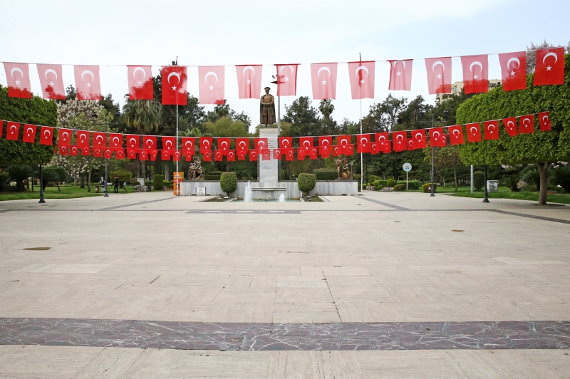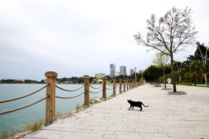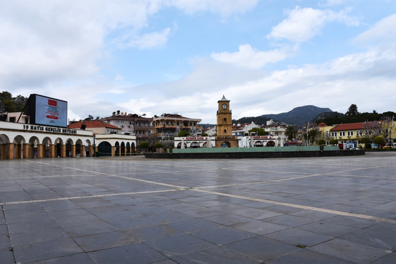 Mersin'de, yeni tip koronavirüs (Kovid-19) tedbirleri kapsamında 'evde kal' çağrısına uyulması ve 65 yaş ile üstündekilere getirilen sokağa çıkma kısıtlaması sonucu normalde yoğunluğun yaşandığı Side harabeleriyle çevrili Kültür Meydanı'nda bu kez sessizlik hakimdi.