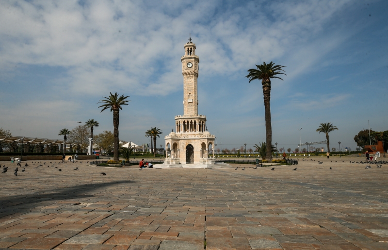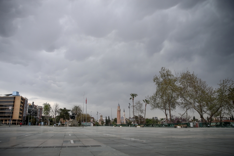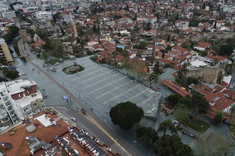 Koronavirüs salgını nedeniyle çoğu evlerinde olan Antalyalılar'ın dışarı çıkmaması ve turist hareketliliğinin olmaması nedeniyle Cumhuriyet Meydanı boş kaldı.