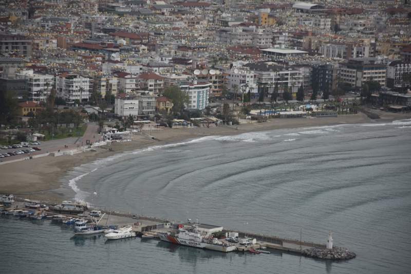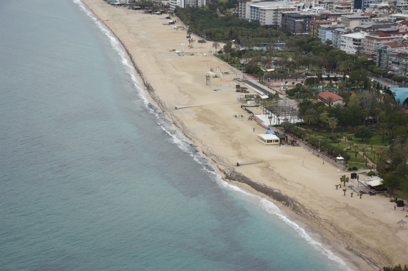 Antalya'nın Alanya ilçesi ünlü plajları, yürüyüş yolları, cadde ve sokaklarında, yeni tip koronavirüs (Kovid-19) tedbirleri kapsamında sakinlik hakim oldu.