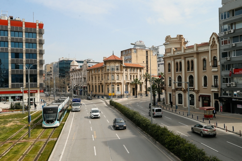 Eskişehir'de yeni tip koronavirüs (Kovid-19) tedbirleri kapsamında 'evde kal' çağrısına uyulması ve 65 yaş ile üstündekilere getirilen sokağa çıkma kısıtlaması sonucu normalde yoğunluğun yaşandığı İsmet İnönü Caddesi'nde yaya ve araç yoğunluğunun olmadığı görüldü.