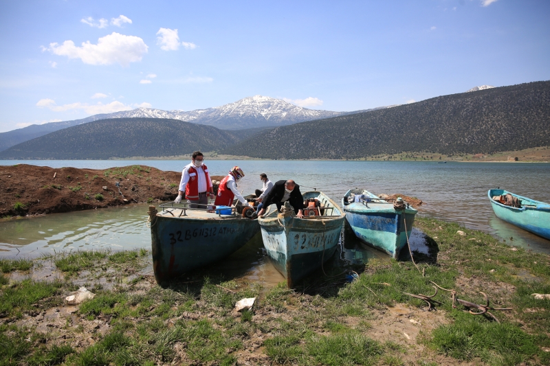 Vatandaşların gıda, ilaç gibi ihtiyaçlarını alan ekipler, kayıklara binerek adaya ulaşıyor. Ekipler, kapı kapı dolaşarak ihtiyaç listesindekileri talepte bulunanlara dağıtıyor.