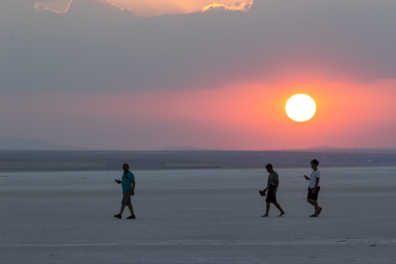 Ankara'dan güney kentlerine tatile giden tatilcilerin, uğrak yerleri arasında yer alan Tuz Gölü'nün hayranları arasında çok sayıda yabancı turist de yer alıyor.