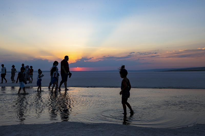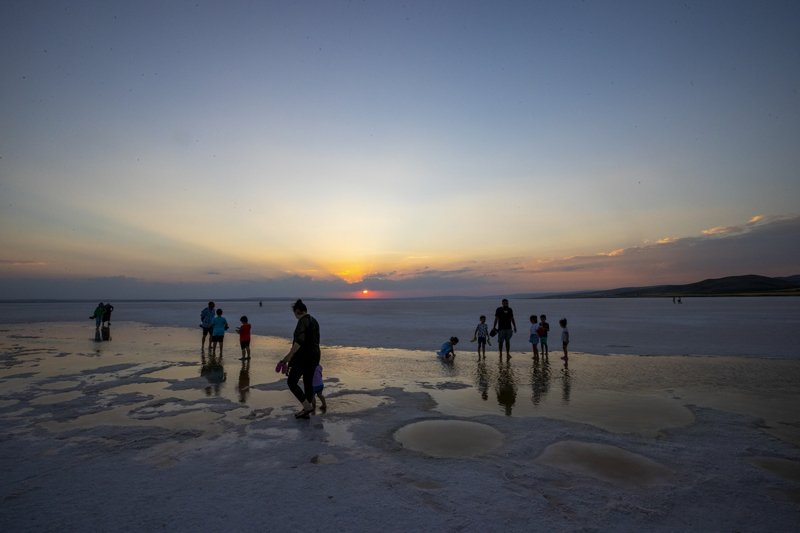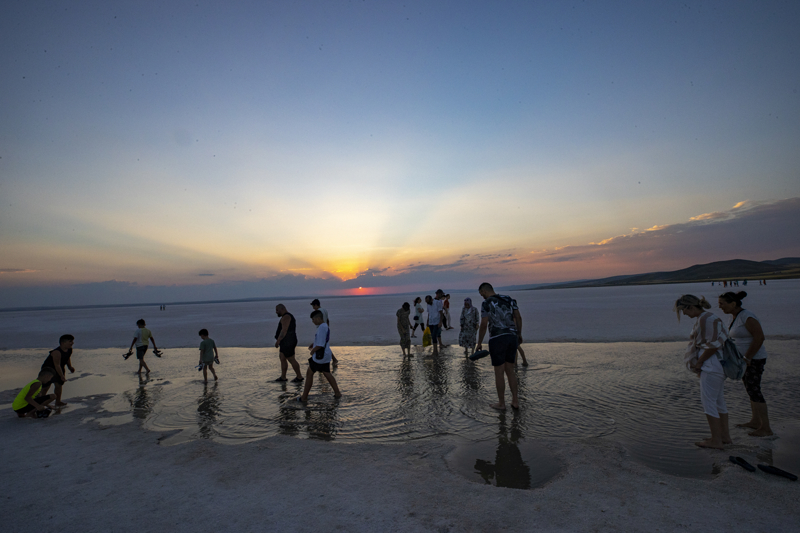 Ağustos ayında büyük ölçüde kuruyarak adeta tuzdan çölü andıran göl, tuzda yürüyerek negatif elektriğini atmak için Ankara ve diğer çevre illerden gelen misafirlerini ağırlıyor.