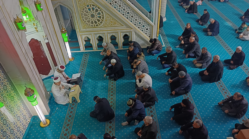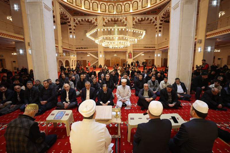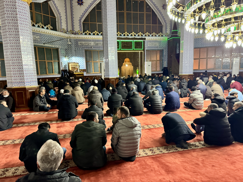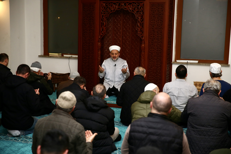 Müftü Yardımcısı Abdulhekim Öz'ün yatsı namazı öncesi verdiği vaazla başlayan programda, namazın ardından Kur'an-ı Kerim okundu, dua edildi.