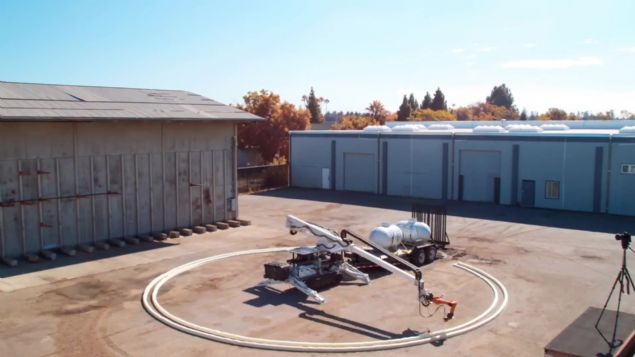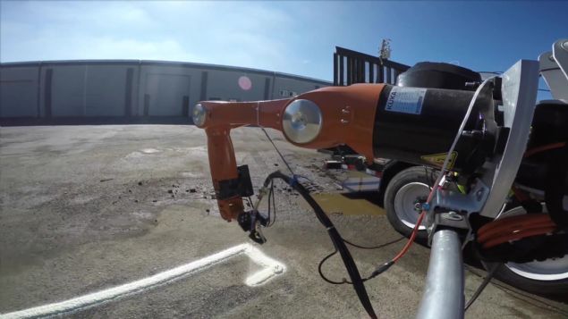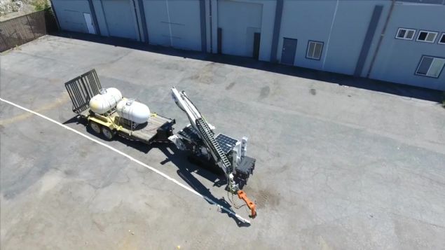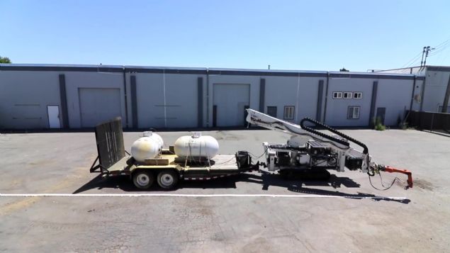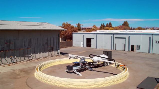Bir paletli araç üzerinde taşınan büyük bir vinç kolu ve onun ucundaki hassas robotik koldan oluşan sistemin, genelde sabit ve kapalı olan diğer üç boyutlu baskı sistemlerin aksine geniş bir alanda çalışma, büyük boyutlu nesneler ve yapılar ortaya çıkarabilme olanağı sağladığı belirtildi.
