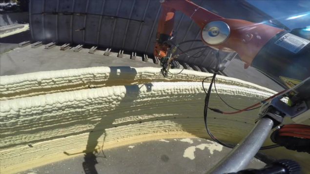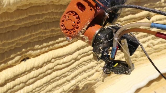 ABD'nin Massachusetts Teknoloji Enstitüsü (MIT) araştırmacıları inşaat malzemelerini, tıpkı 3 boyutlu alaşım baskıda olduğu gibi, enjektörlerle akışkan formda püskürterek yapı formları kurabilen bir inşaat robotu üretti.